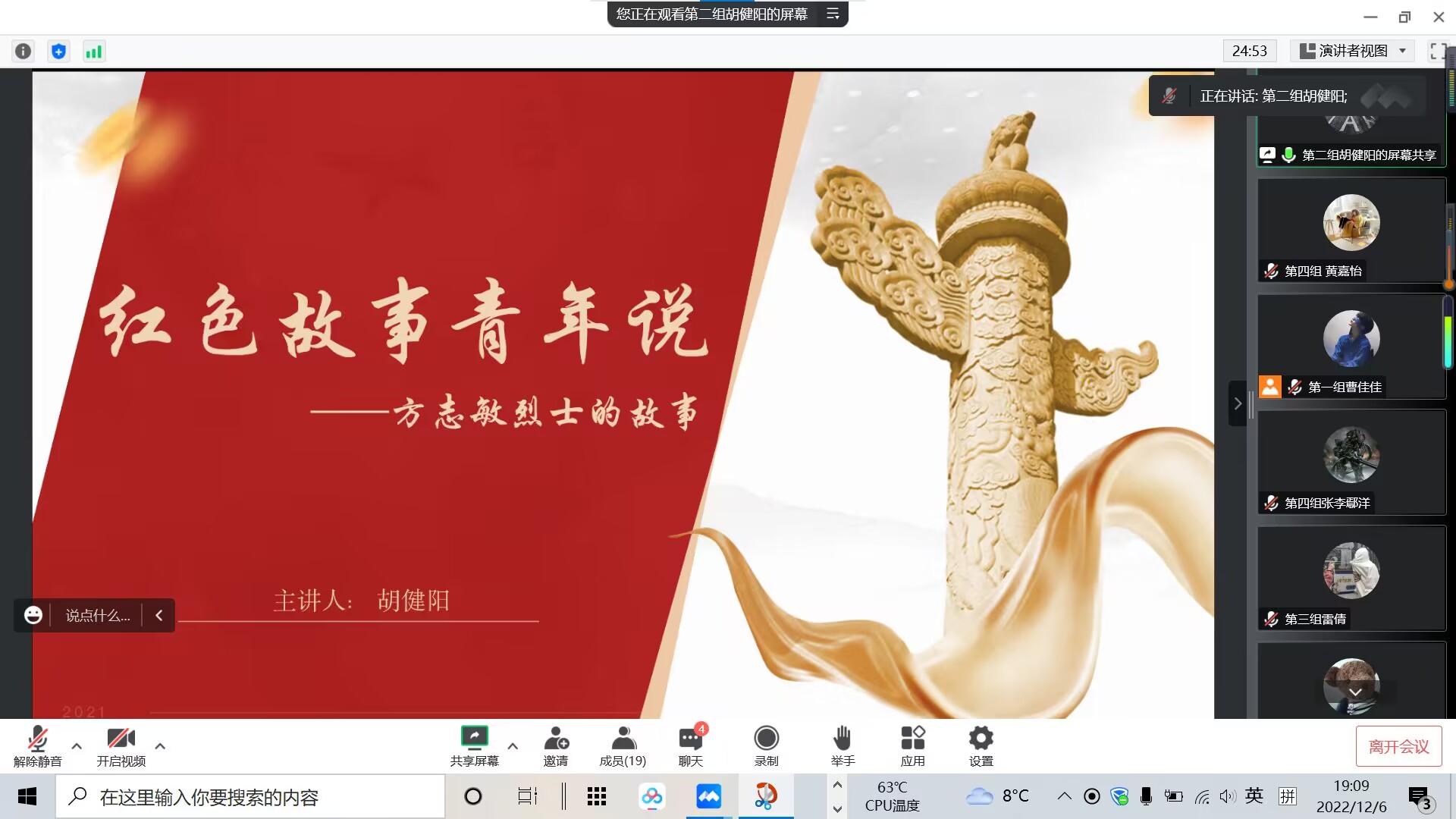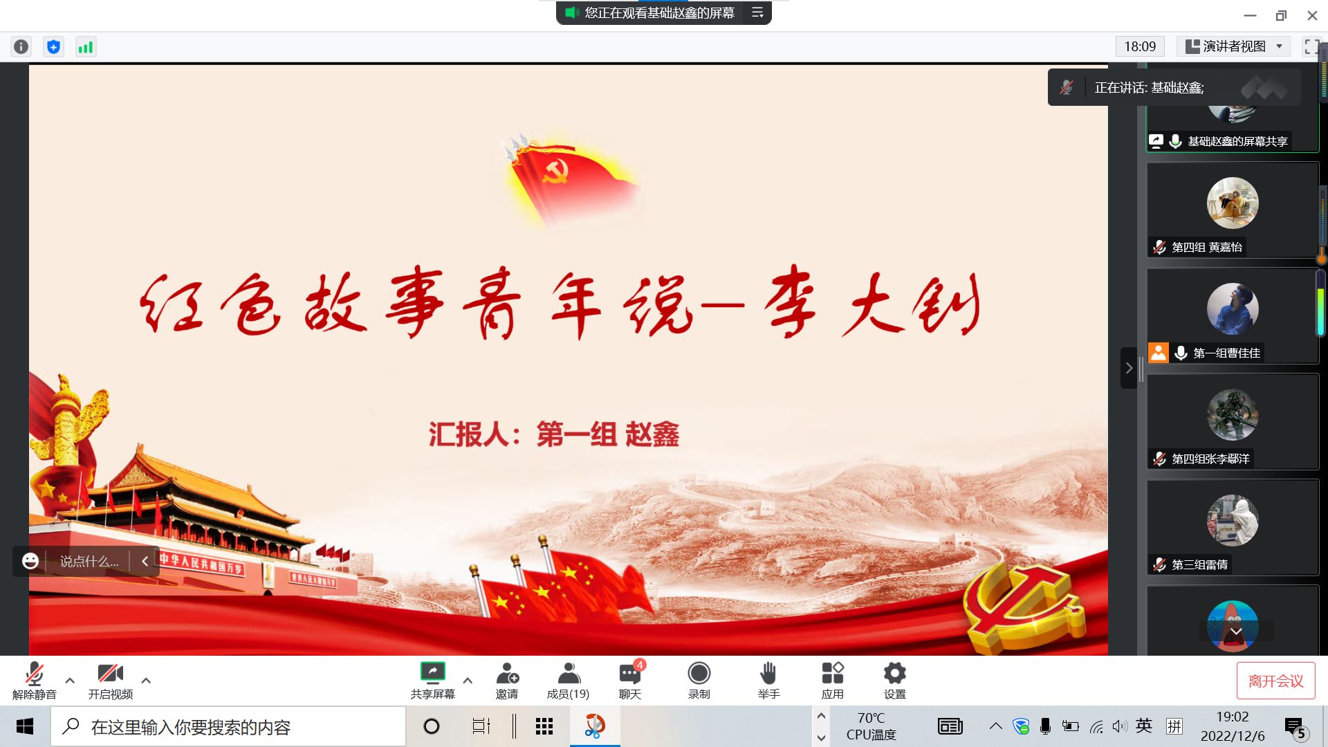 为深入学习贯彻党的二十大精神,以习近平新时代中国特色社会主义思想为指导,加强青年思想政治引领,帮助青年增强文化自信,传承红色基因,弘扬革命精神,2022年12月6日晚19:00,基础医学院以腾讯会议的方式举办了第三届大骨班“红色故事青年说”主题活动。