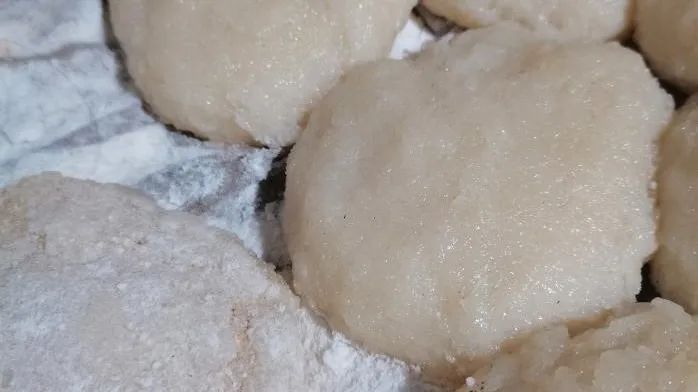 糍粑象征着丰收、团结、吉祥。奶奶知道我喜欢吃糍粑,每次我过年回家,奶奶都会给我做糍粑。首先,把糯米洗净,放在水中浸泡半天以上,把浸泡好的糯米在木桶中蒸熟。简简单单的蒸糯米这一小小的步骤却不容忽视,妈妈也曾用电饭煲煮过少量的糯米,尽管放的水比较多,也没有那种用柴火木桶蒸出的软糯香甜的味道。接下来便是“打糍粑”,把糯米放在大石臼中,用木杵不断敲打。民间有“糍粑越打越软,日子越过越好”的说法。每次打糍粑一般会蒸较多的糯米,黏糊糊的糯米粘在木杵上,似乎有千斤重,打糍粑这种体力活就交给爸爸和爷爷了,看着他们轻松打糍粑的样子,刚开始我还觉得很简单有趣,当我兴致勃勃得接过木杵时,才知道木杵有多重,费半天力气好不容易把木杵提起来,还要抵抗惯性防止后仰,打糍粑的动作压根做不连贯,只能笑哈哈地把这项重任交给爸爸、爷爷啦。直至糯米团被敲打到看不出明显颗粒物,黏糊成一大团时,打糍粑就算完成,把糯米团拿出,分成数个大小适宜的饼子,放在有米粉的布或者案板上晾着即可。刚做好的糍粑最为软糯,将糯米饼放在铁锅中,不用放油,用小火烙热,蘸着白糖或者黄豆粉食用,唇齿留香,黏糊香甜的感觉让人吃了一个又一个,让我记了一年又一年。当天吃不完的糍粑放置几天后,会变得比较硬,此时可以把糍粑饼切成薄片,裹上鸡蛋液放在油锅中煎炸,捞出后淋上红糖液或者撒上白糖,又是另一番美味。
