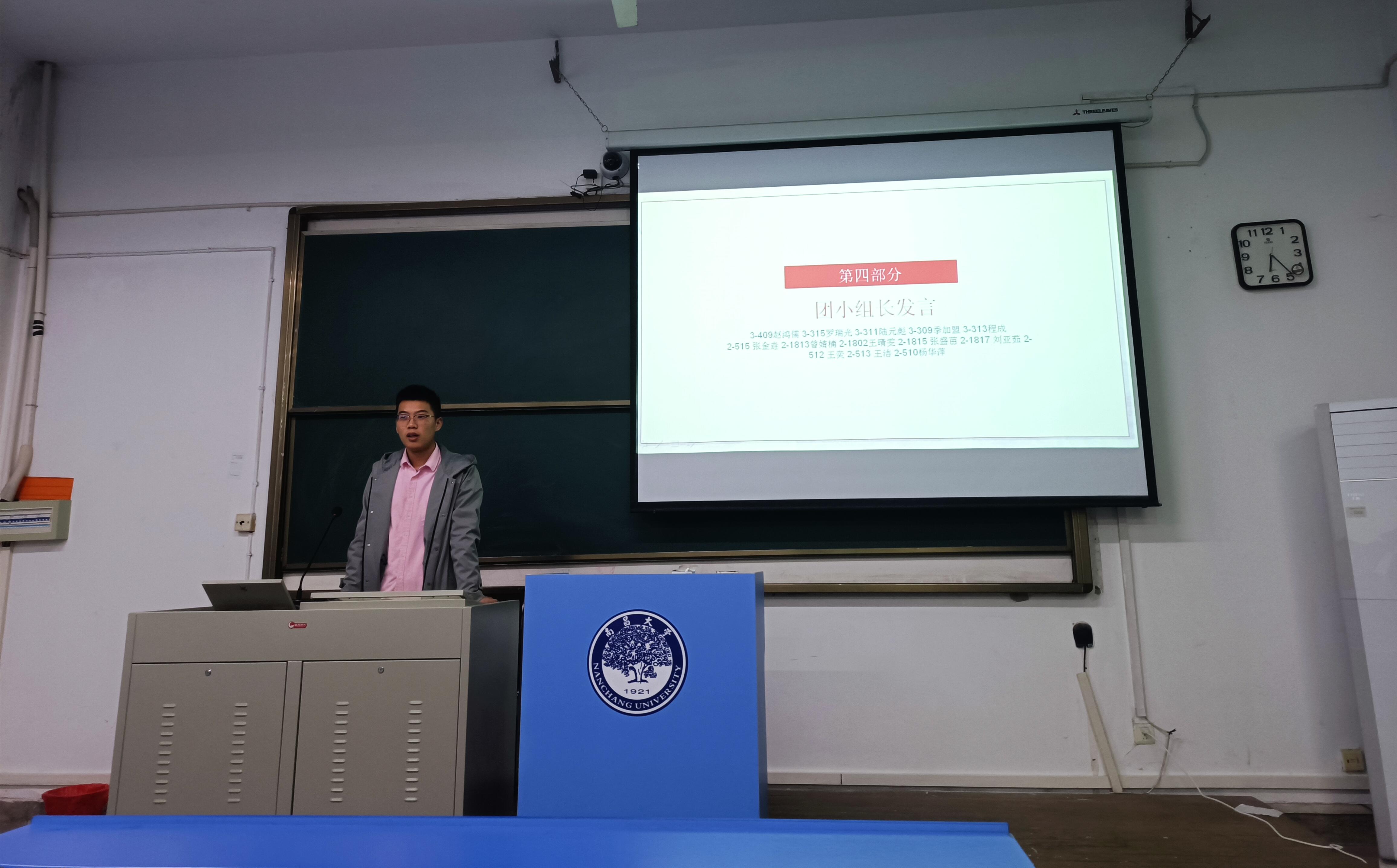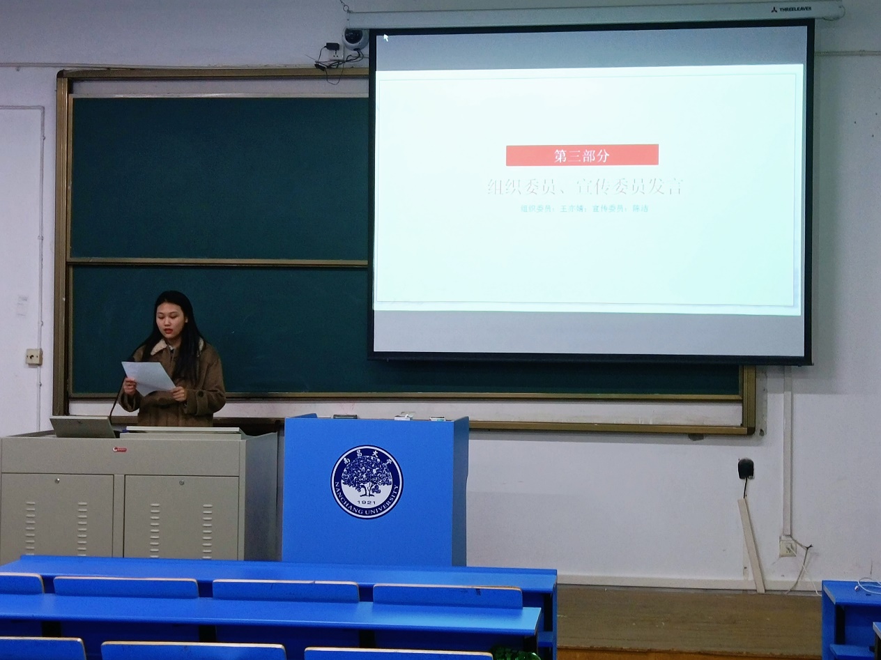 宣传委员陈洁同学,从磨练之于青年着手,号召大家学习“清华树洞”一文中的主角的坚定理想信念,增强奋斗精神,努力掌握科学知识,刻苦学习,在自己的领域上发光发热。