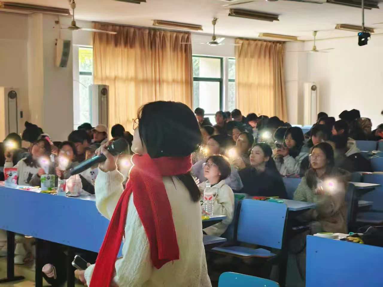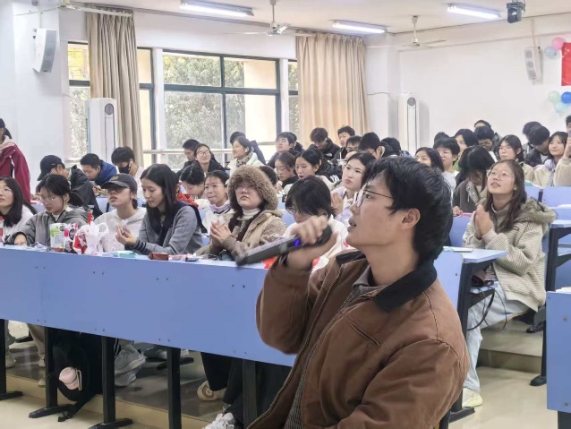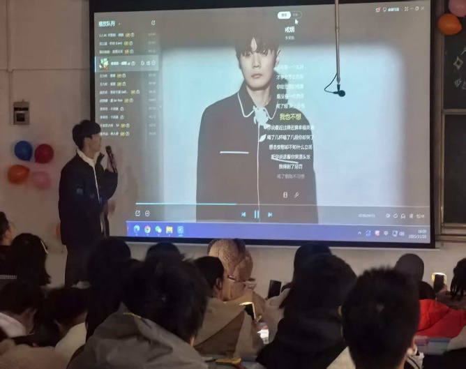 游戏环节落幕,同学们的热情依旧不减。多位同学主动登台献唱,或温柔或激昂的歌声在教室里回荡,更引发了全场合唱。熟悉的旋律、真挚的歌声,传递着彼此的温暖,也让真挚的情谊在心灵之间悄然萦绕。