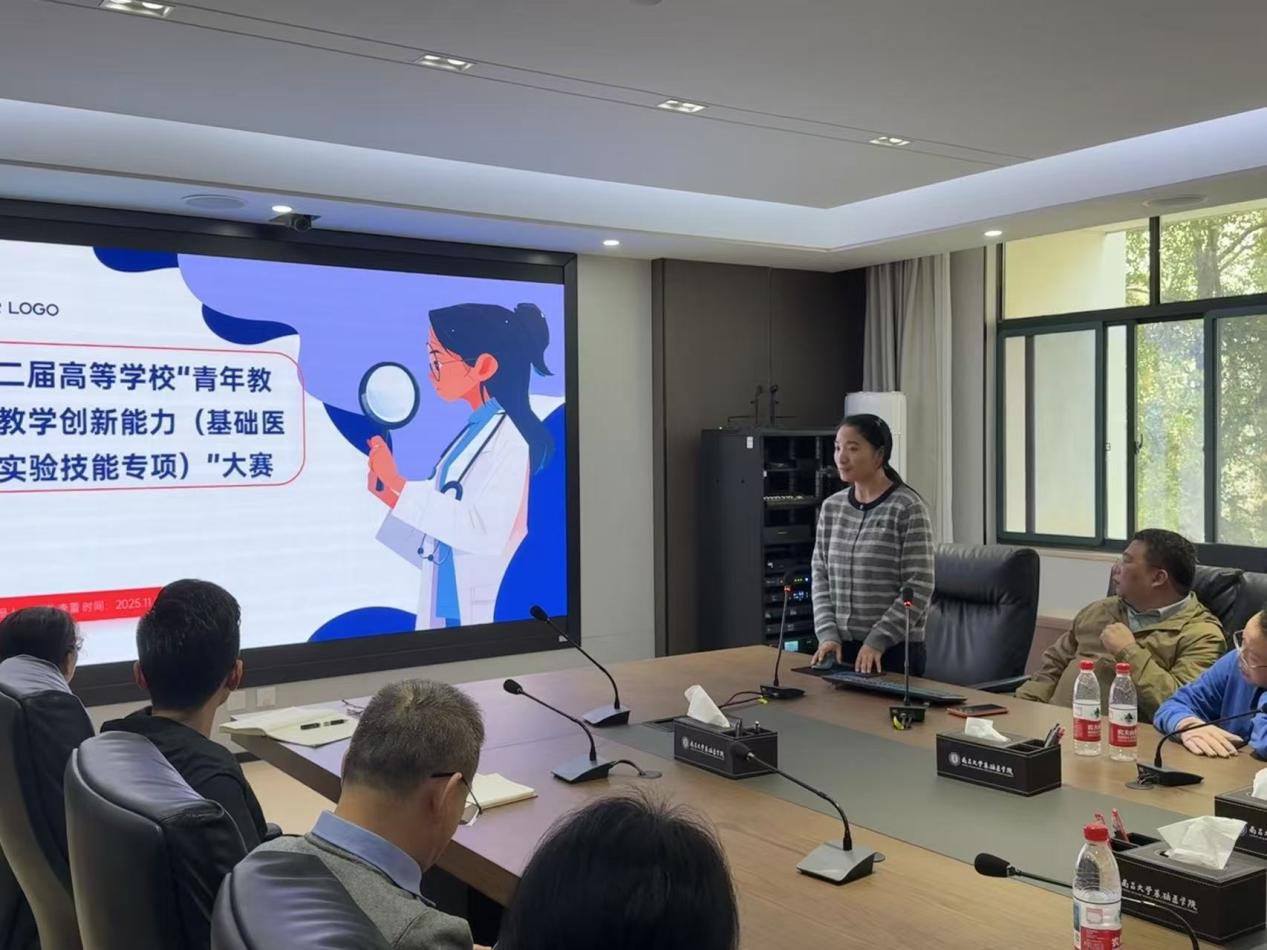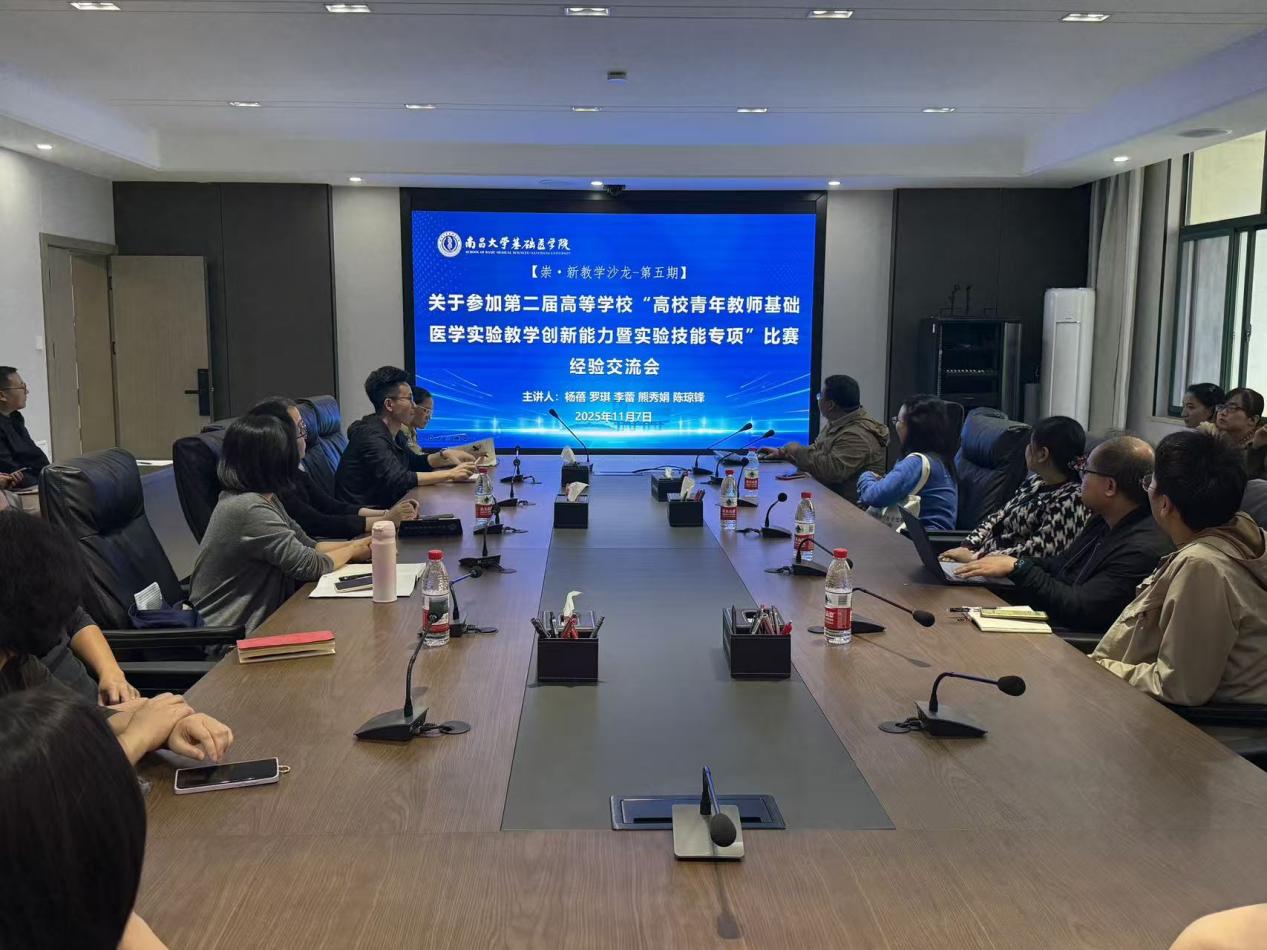 11月7日上午,基础医学院在前湖南院第二实验大楼204会议室举办第五期“崇·新教学沙龙”。本期沙龙以“高校青年教师基础医学实验教学创新能力暨实验技能专项比赛经验交流”为主题,特邀我院参赛教师杨蓓、罗琪、李蕾、熊秀娟、陈琼锋五位青年教师作为主讲嘉宾,分享参赛经历与教学创新实践。副院长刘琼主持活动,学院各教研室主任、实验中心主任及骨干教师40余人参会。