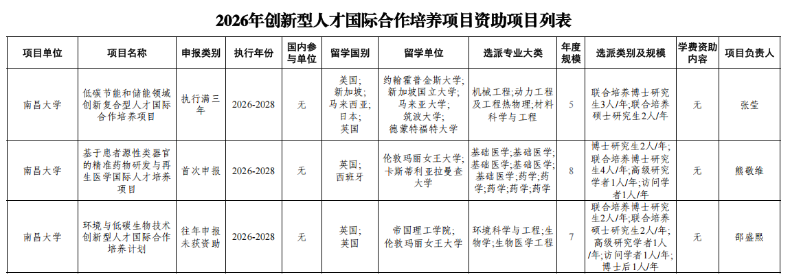 “创新型人才国际合作培养项目”由国家留学基金委设立,项目服务国家战略需求、聚焦高精尖缺领域、创新人才培养模式。项目重点支持中外双方“强校合作”和优势学科领域“强项合作”,实行“先立项,后选派”的管理模式,通过强化高校国际化人才培养的主体地位,赋予高校更多出国留学人员“选、派、管、回、用”的自主权。获批立项的所有项目由学校负责组织实施,录取人员均纳入国家公派出国留学计划,由国家留学基金提供资助。