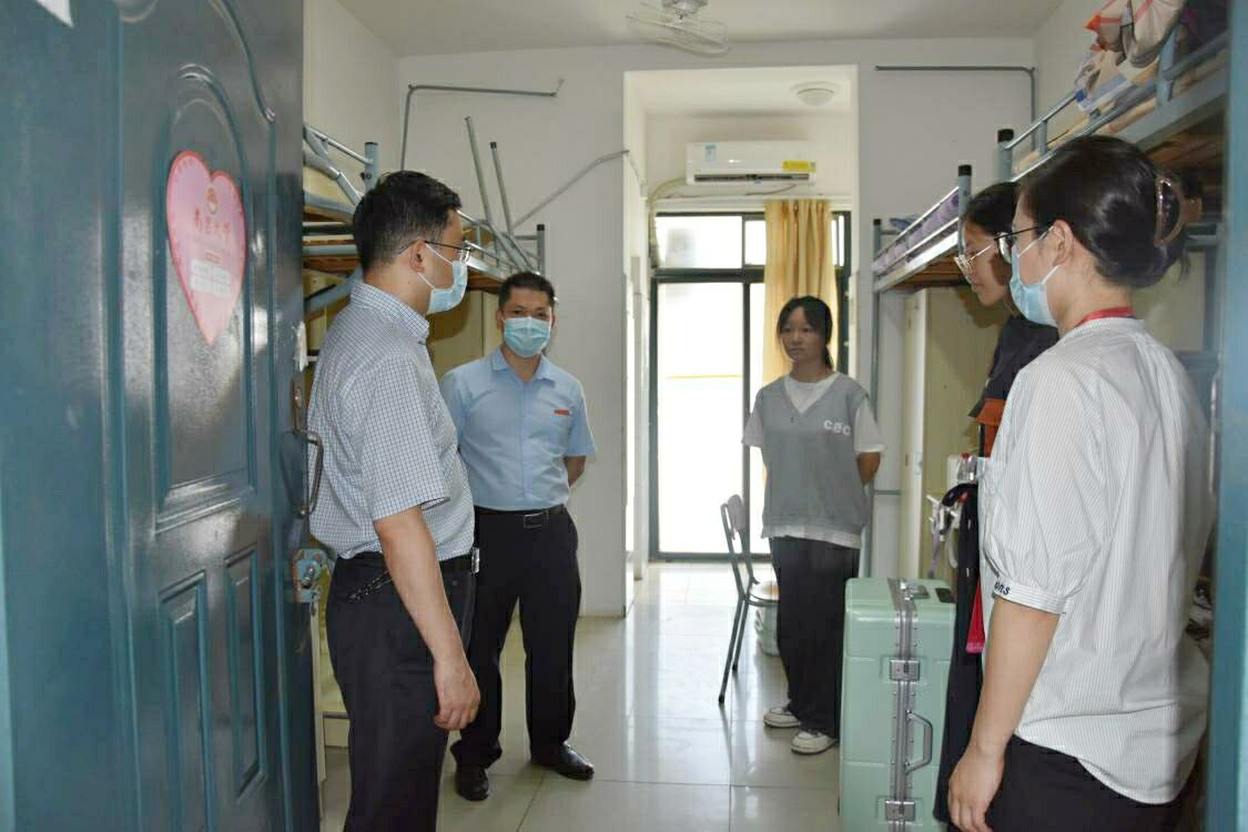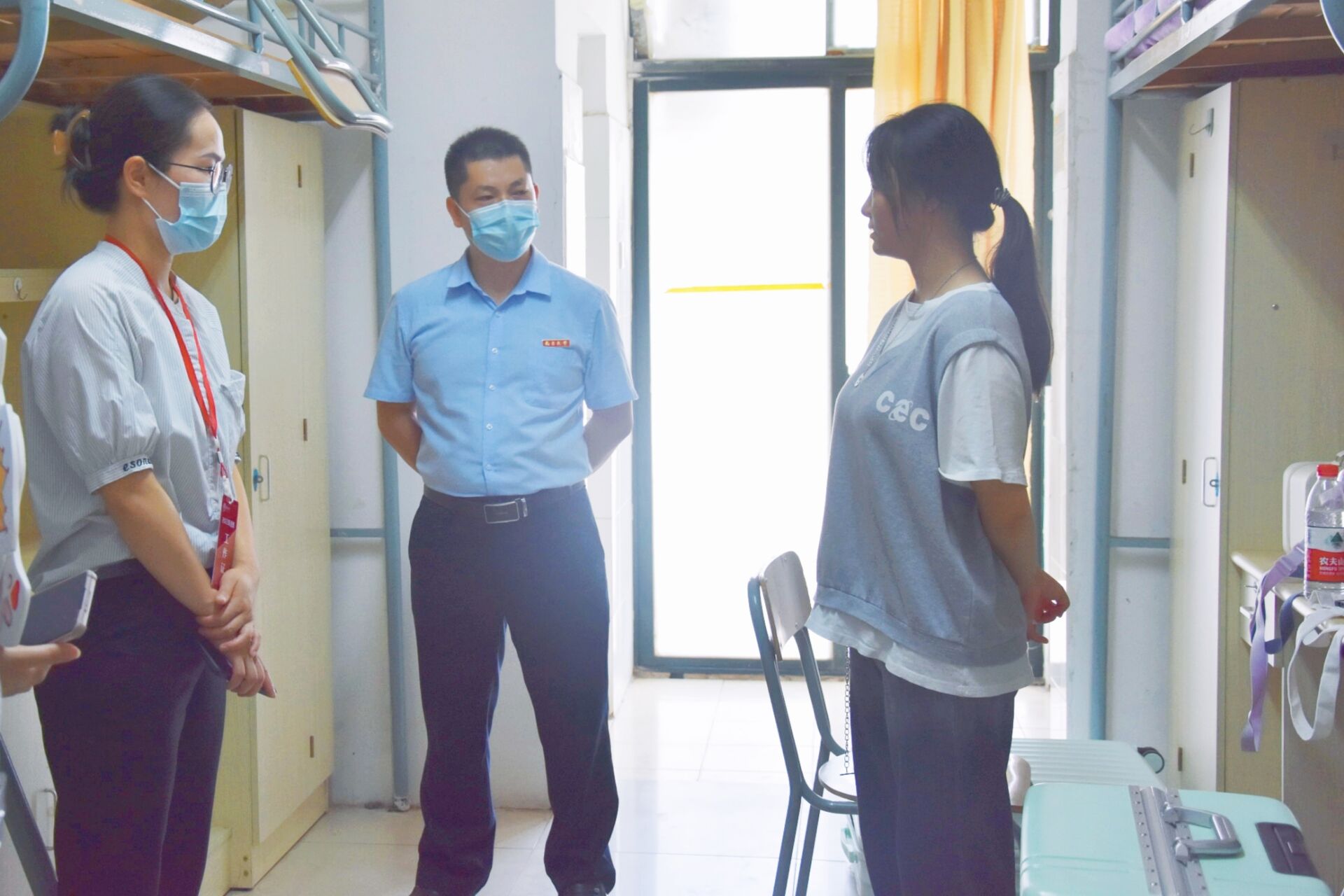 学院党委书记徐勇、学院党委副书记胡蓉、学院副院长黄春洪走访了新生寝室,与学院学生亲切交流鼓励大家调整自身状态,尽快适应校园生活。