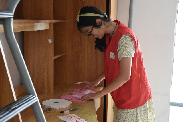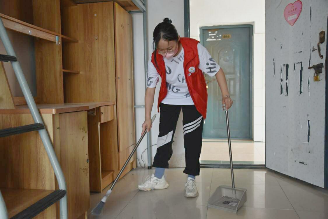 (基础医学院萤火志愿服务队成员布置新生寝室、打扫寝室卫生)
