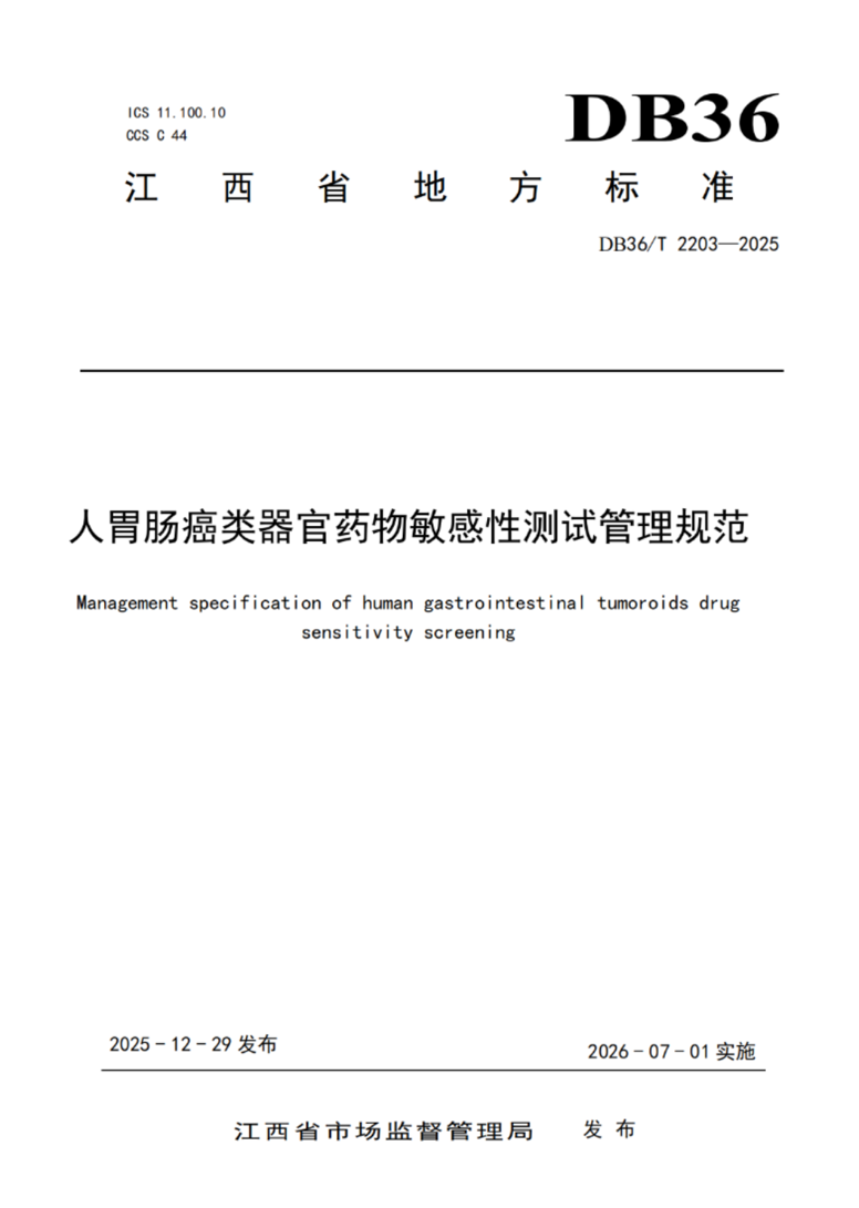 Filling the Provincial Gap! Jiangxi's first Standard for Gastrointestinal tumoroids Drug sensitivity Screening Officially Released