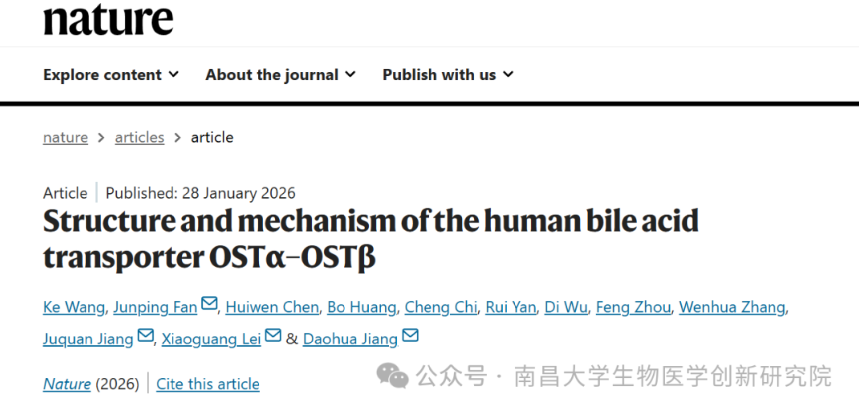 我院博士后王柯在《Nature》发文揭示人源OSTα/β蛋白转运底物机制
