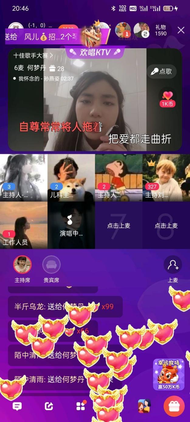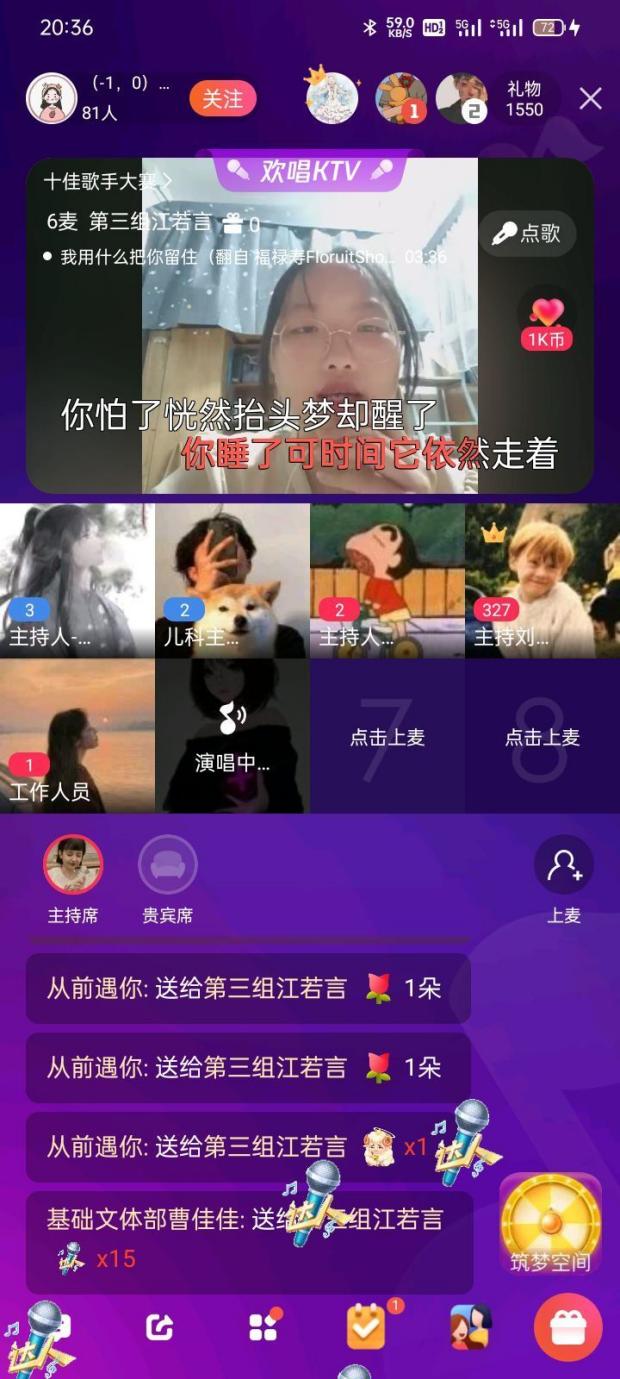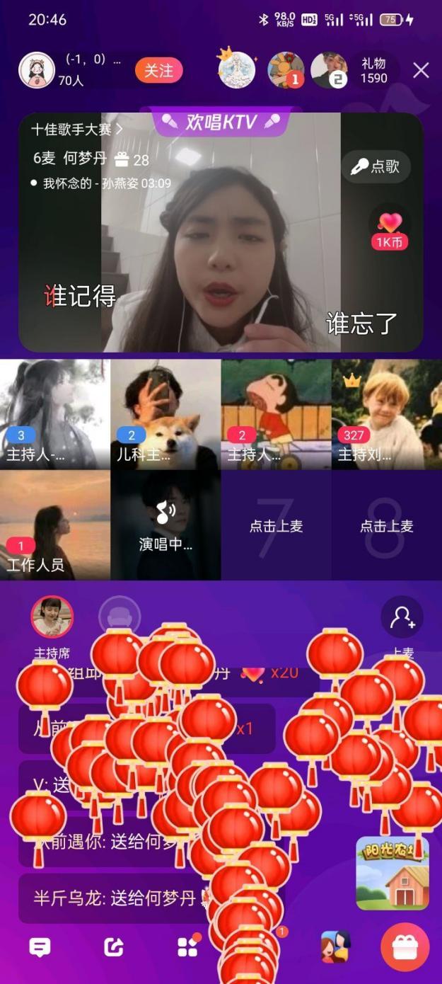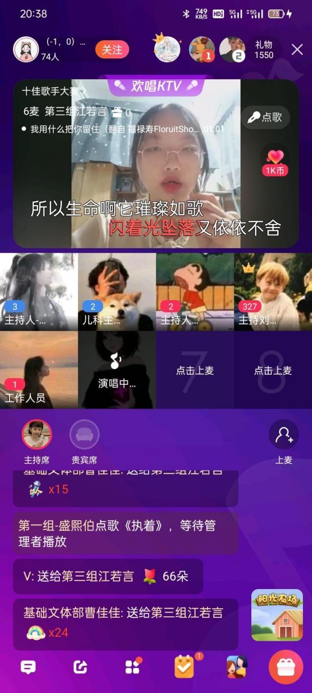326日晚,同学们在全民kapp参加初赛。选手们依次表演自己精心准备的歌曲。捧捧鲜花礼物堆满屏幕,一颗颗小爱心表达对演唱者的支持,虽是线上的比赛,同学们仍热情高涨,观众们积极活跃,选手们收获满满。最终,由平均分进行高低排序,由评委现场在线打分,按分数高低晋级10位选手入决赛。