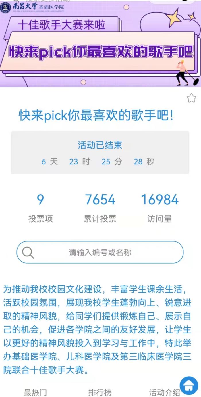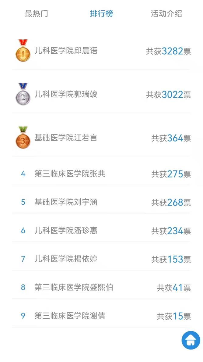 为推动我校园文化建设,丰富学生课余生活,活跃校园氛围,展现我学生蓬勃向上、锐意进取的精神风貌,给予同学们提供锻炼自己、展示自己的机会,促进各学院之间的友好发展,结合疫情防控,我院与儿科医学院和第三临床医学院联合于4919:00在线上举办了“青春心向党,一起向未来”十佳歌手大赛。