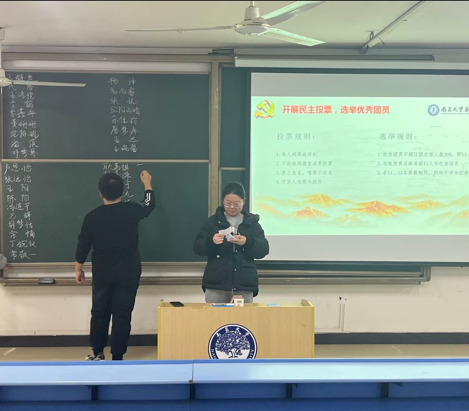 评议后班级开展团员先进性评价民主测评投票。活动的过程中,秉持着公平、公正、公开的原则,各位共青团员将票投向心中的人选。