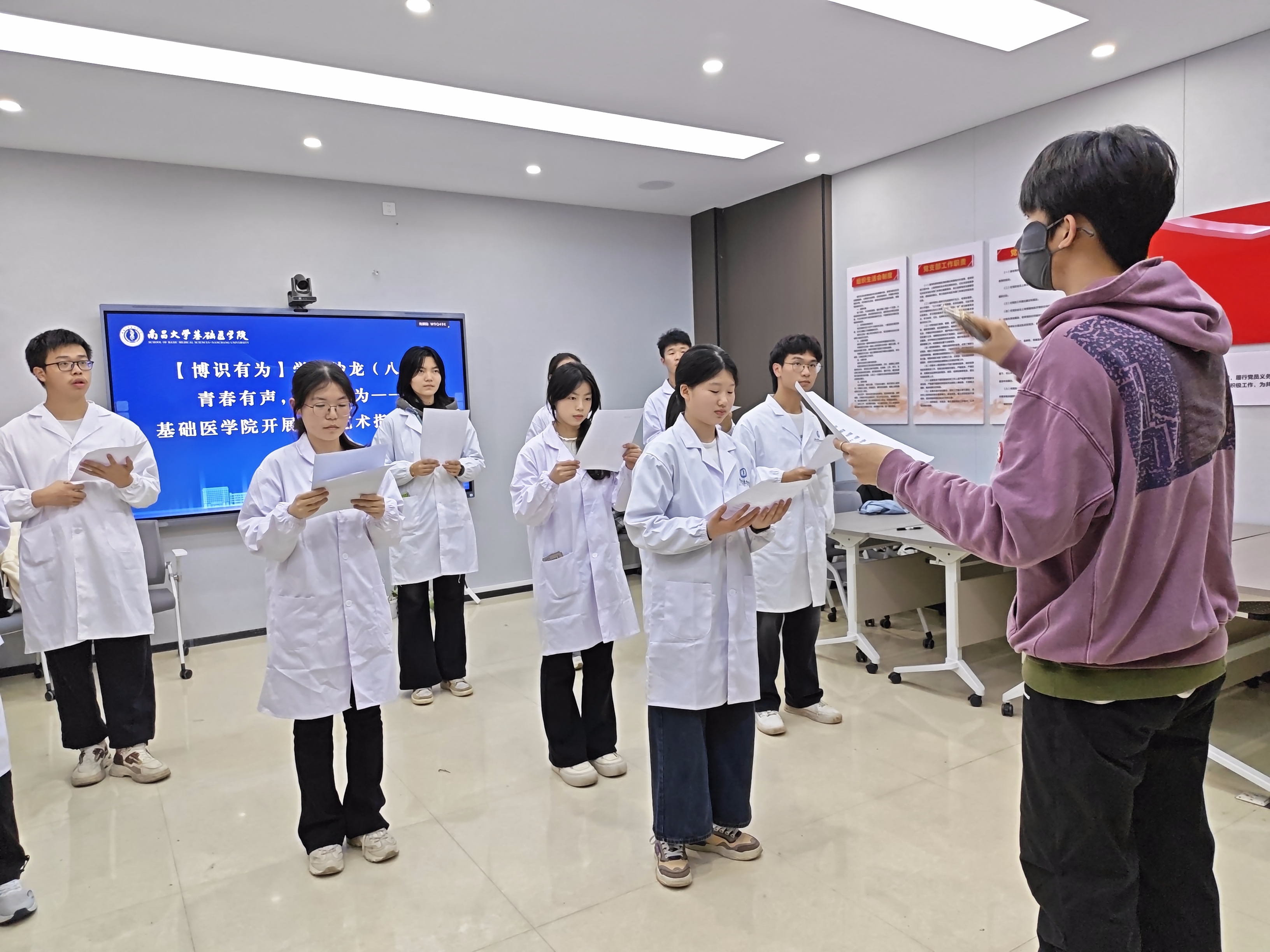 为深化美育浸润行动实效,提升学生综合表达能力和人文素养,营造浓厚的美育育人氛围,3月19日晚,基础医学院举办第八期“博识有为”学习沙龙。活动邀请新闻传播学院播音主持专业王海博同学担任小老师,为学院学生开展朗诵艺术专项指导,助力基础学子在语言表达与舞台展现中涵养美学素养、传承文化情怀。