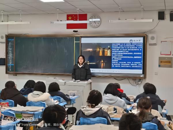 费籽酥同学回到母校山东省牟平第一中学进行宣讲,宣讲内容分南昌大学、医学院、基础医学三个方面进行讲解,紧扣“格物致新,厚德泽人”校训,展现了一个解决卡脖子问题、服务国家社会、学科交叉融合、关注人类命运共同体的全面发展的南大。宣讲过程中,费籽酥同学与高中同学积极互动,让更多人认识和了解基础医学这门专业,将对于南大及基础的热爱传递给高中同学。