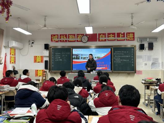 贾中岳同学回到母校河北省怀来县沙城中学进行宣讲,详细介绍了南昌大学的历史、文化和校园环境。贾中岳同学通过讲解自己在南昌大学的学习和生活体验,为学弟学妹们展示了一个更加生动和鲜活的大学生活。他也分享了自己在高中时期的学习方法和备考经验,希望能够对同学们的学习有所裨益。贾中岳同学表示“这次宣讲活动让我深刻体会到了朋辈帮扶的重要性,作为学长学姐,我们有责任将我们的经验传递给低年级同学们,同时我也在相互交流的过程中向更多优秀的同学们学习”,他坚信,在未来的日子里,他会更加努力地成长,为学弟学妹们树立更好的榜样。