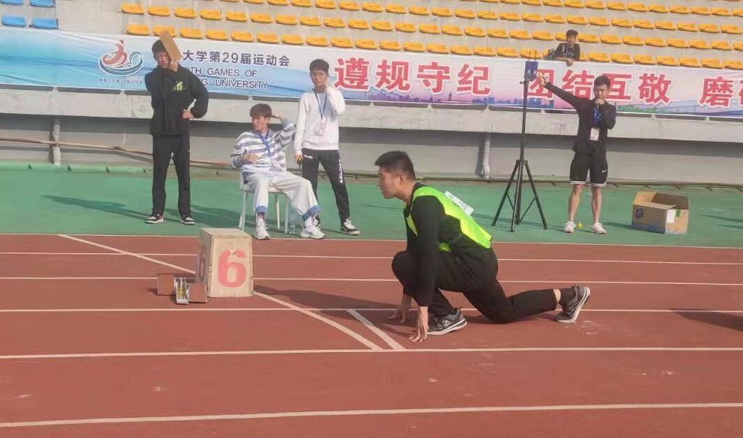 首先,上场的是代表我院参加比赛的硕士生李俊成同学,他一人包揽了男子200米和男子5000米的项目。他站在红色跑道上,面对高手如云的对手们,把跑道当作征途,用他的毅力和决心,向自己的体力和耐力发出挑战,纵使汗水滴落脸颊,可脚步却从不停歇,正如少年追梦人,奋进正当时!
