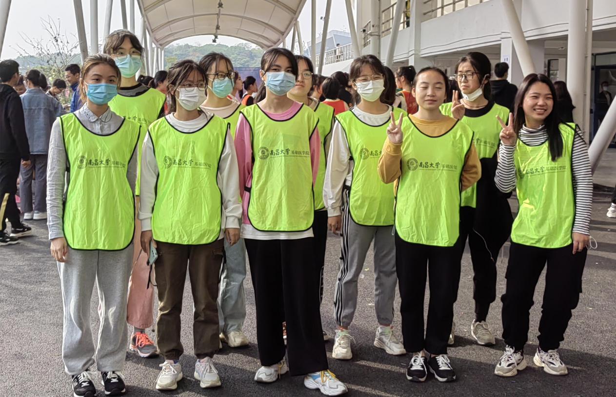 最后,代表研究生参赛的周思莉同学和学院本科生运动健儿们,一起为参加此次运动会的基础医学院的运动健儿们加油和代言。