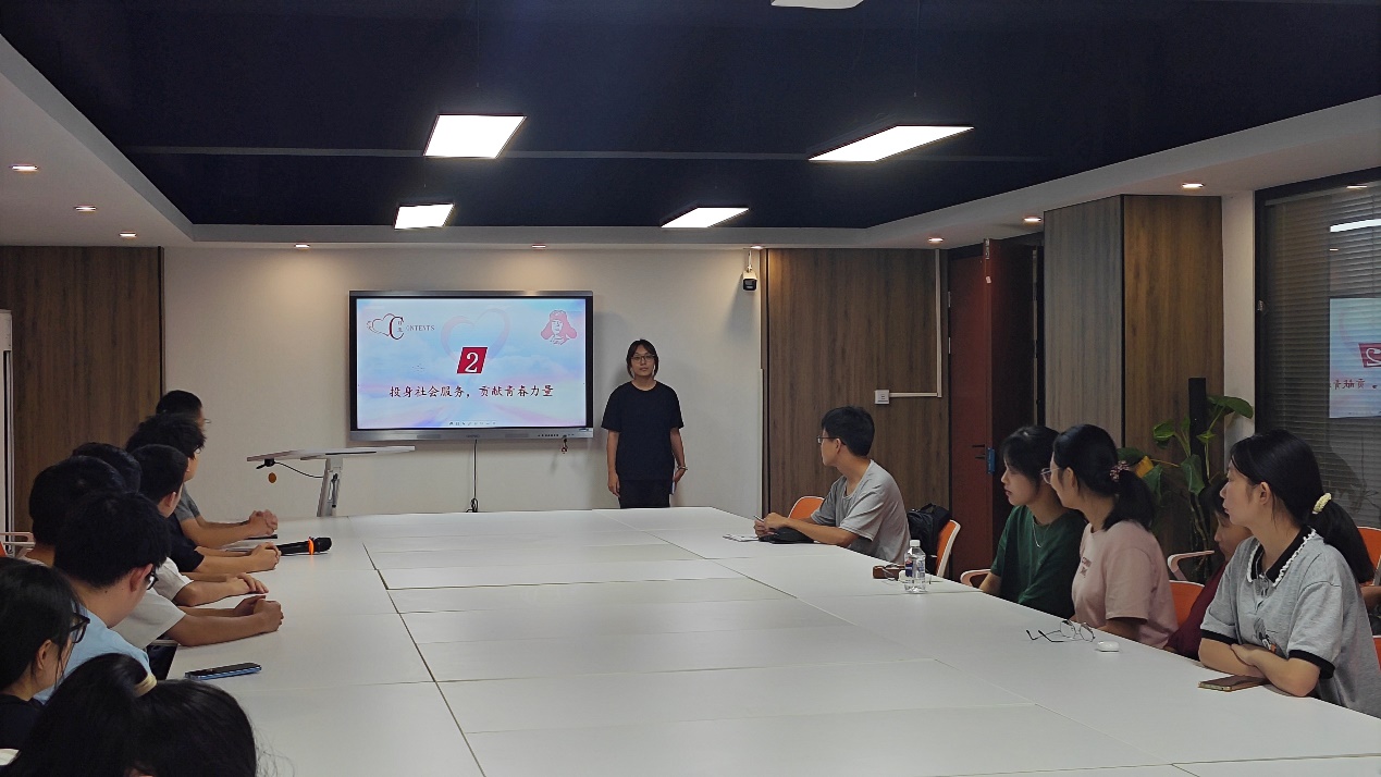 我们紧紧围绕“社会服务——基层一线铸青春”的活动主题,团支部组织全体同学开展讨论,梅铎濛同学用优秀党员的例子,号召同学们积极参与社区实践。