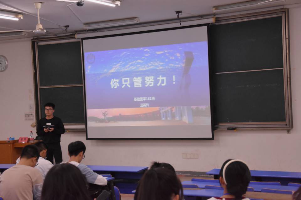 首先,温英玲同学分享了自己的学习经历——从大一上学期专业排名倒数到后来成绩稳居专业第一。表示成功的秘诀是