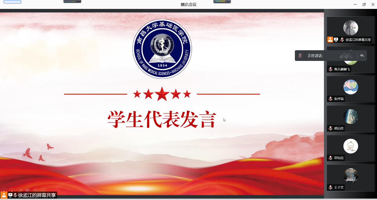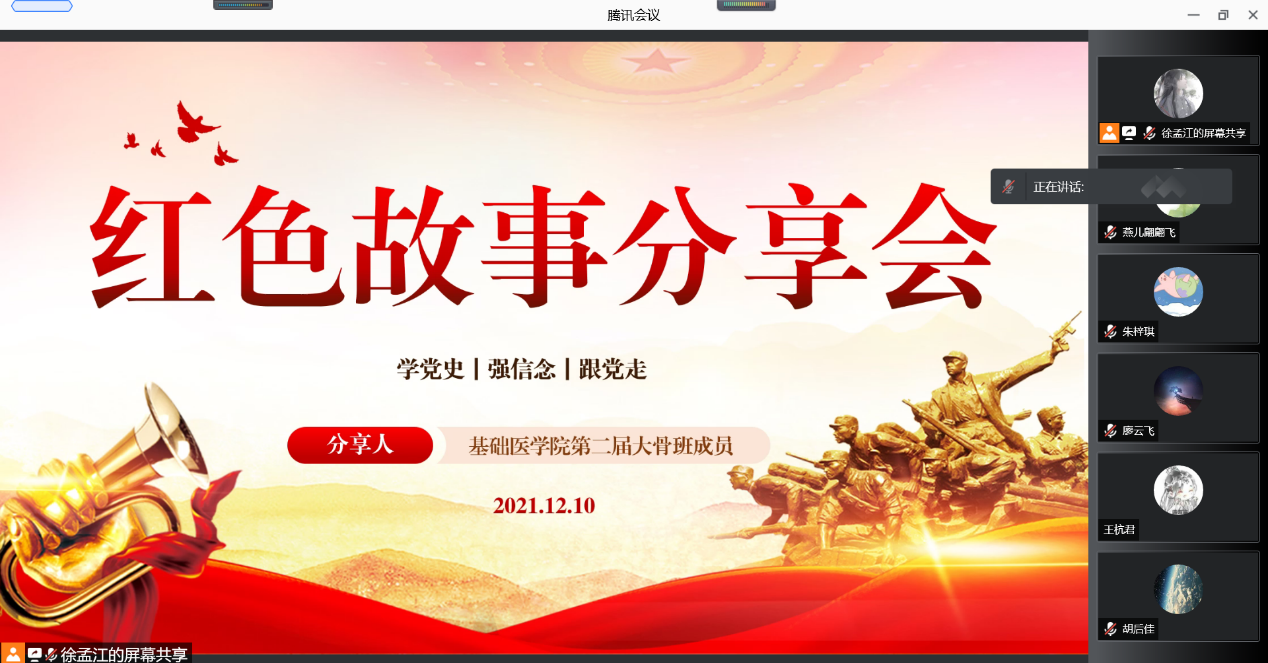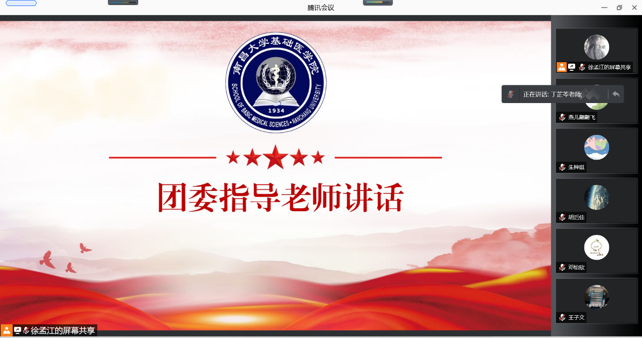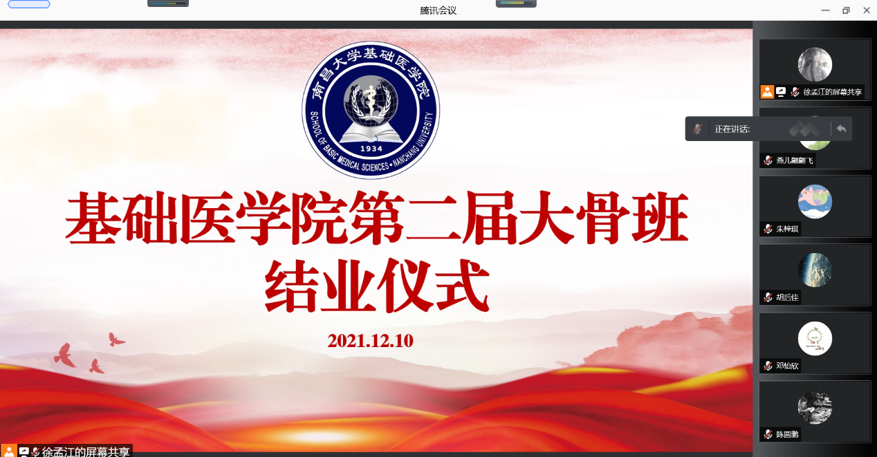 综合当前疫情防控形势,2021年12月10日20:00,基础医学院第二届大骨班在线上举行结业仪式。基础医学院学生会团委指导老师丁芷芩、第二届大骨班全体成员共同参与。