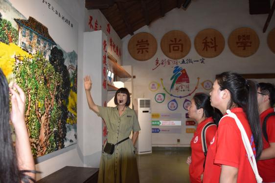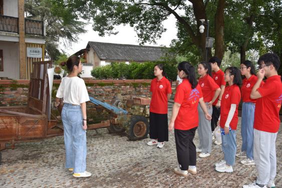 “欢迎大家来到共青精神体验园,共青精神体验园的遗址是咱们‘共青精神’的发源地……”在讲解员的解说与带领下,实践服务队员们徐步走进体验园区。在园内,实践服务队员们一一走过垦殖场旧址、垦荒创业图片展厅、民俗(农耕文化)博物馆和篝火广场,这里保存着当年的垦荒队员阅读毛泽东选集的珍贵手稿和农耕与副业的生产工具等。展厅二楼陈列室按照“坚韧不拔”“艰苦创业”“崇尚科学”“开拓奋进”四个主题布展,再现了老一辈“共青人”在金湖乡建立垦殖场,办机耕队、砖瓦厂、板鸭厂的创业历程。在共和国成立不久便成立的共青垦殖场可谓是和国家一同成长。以马克思主义和毛泽东思想为指导,坚持问题导向与科学分析,共青垦殖人就是这样在艰苦的环境中树立起心中的明灯,从而更好地在他们那个艰苦又光辉的时代开拓奋进。