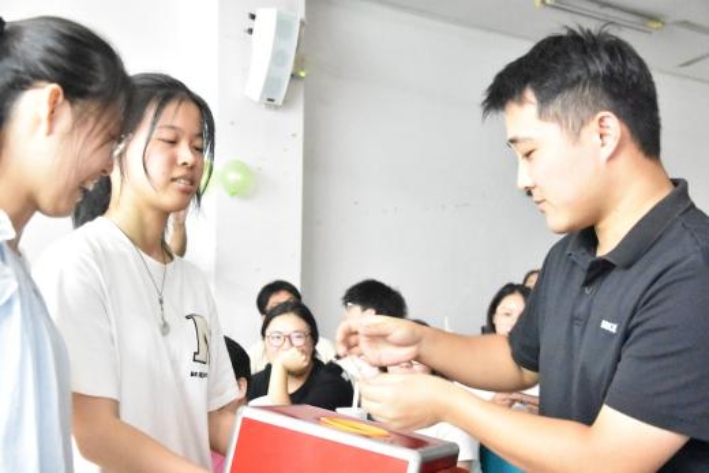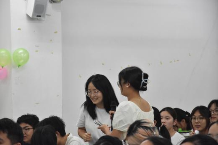 在抽奖环节及游戏环节中,同学们积极参与,师生互动频繁,现场活动氛围热烈,现场一片欢声笑语。