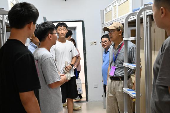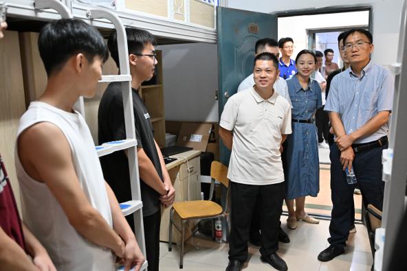 随后,陈校长一行还深入学院新生寝室,亲切询问同学们的入学适应情况,了解大学初印象与生活需求,勉励同学们珍惜韶华、奋发有为,校领导的亲切关怀及谆谆嘱托温暖同学们心田。