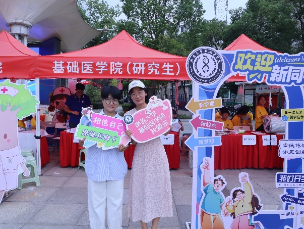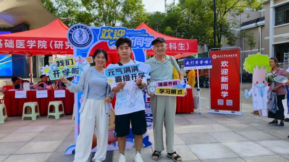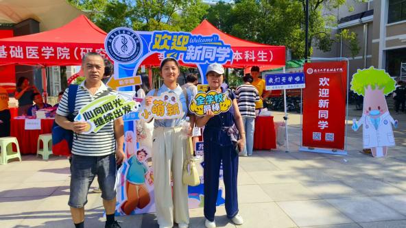 学院在报到区设置了带有学院特色的创意打卡点和合影墙。“基础医启航”、“青春有梦,勇敢前行”等活泼的标语,搭配学院标志性元素,吸引了众多新生驻足留念。新生们与家人、同学在打卡点前拍照,记录下这具有特殊意义的时刻。