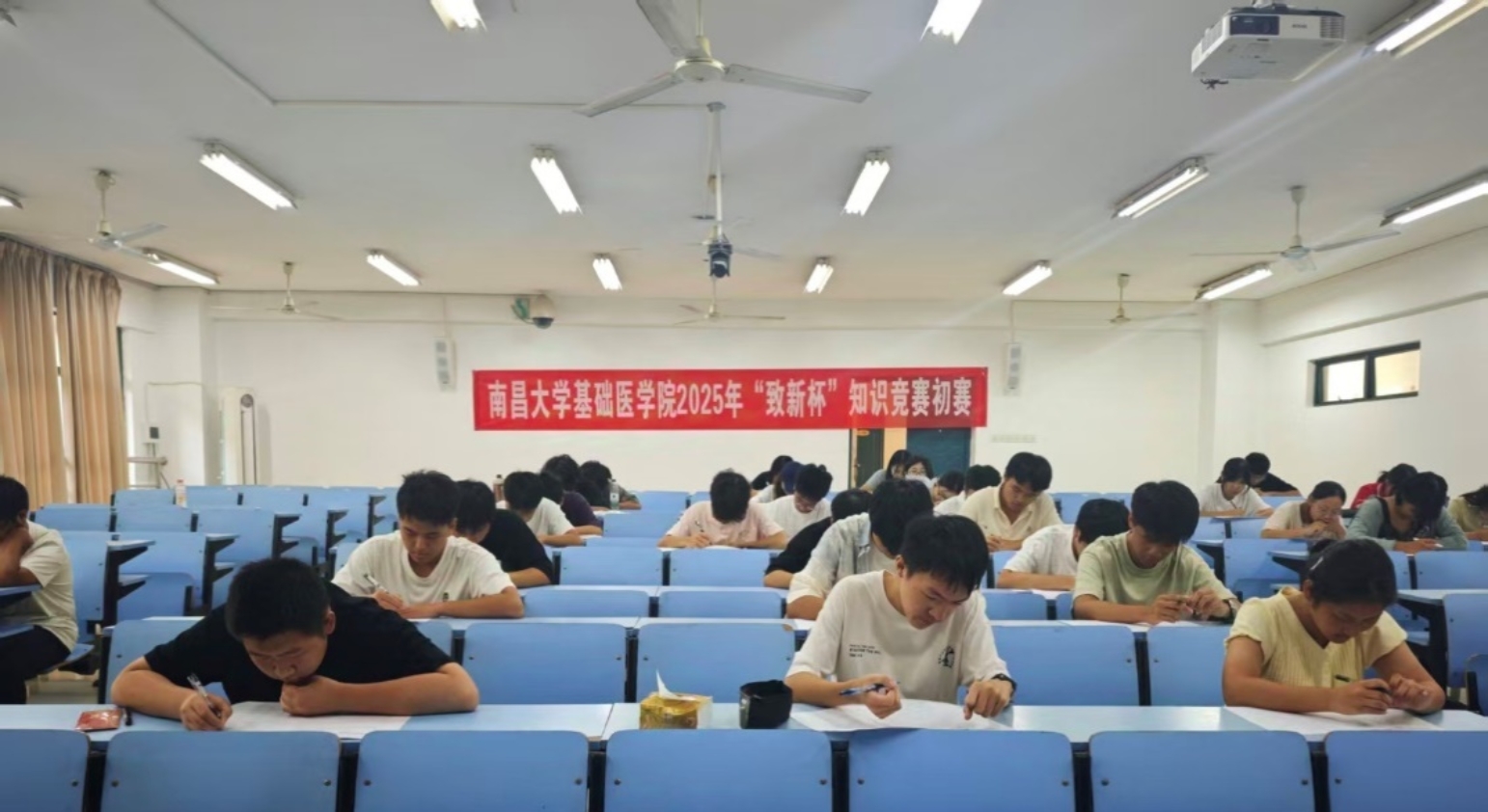 为深入学习贯彻党的理论知识,铭记光辉团史,引导青年学子弘扬爱国主义、培育爱校荣校意识,增强凝聚力与使命感,展现新时代我院学子笃信好学、刚健有为的精神风貌,我院于9月27日在第二教学大楼组织开展基础医学院2025年“致新杯”知识竞赛活动。