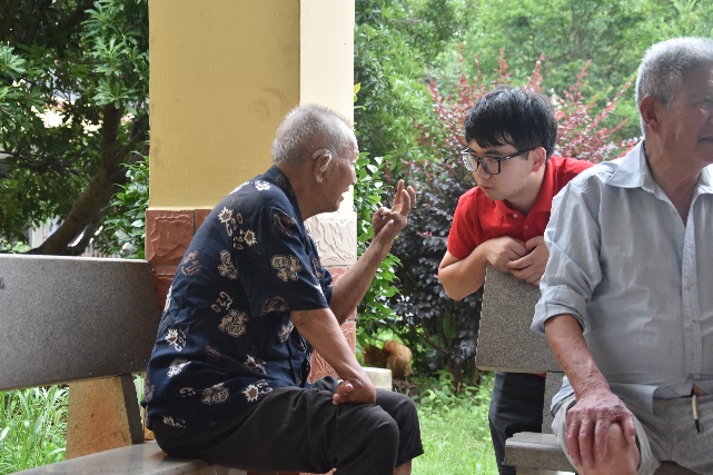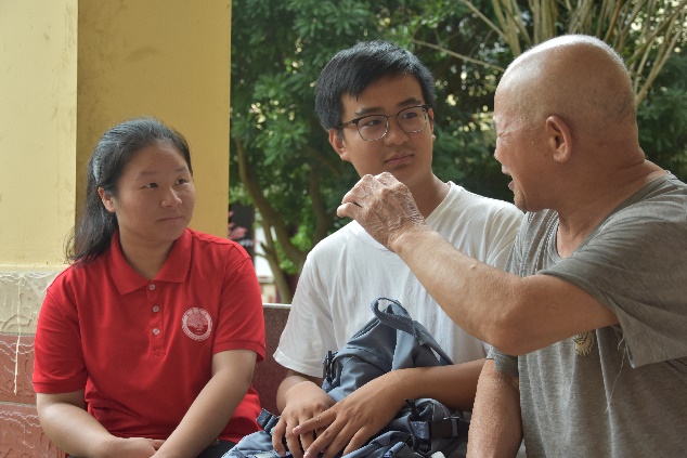 基础医学院暑期社会实践队融入垦荒老人群体中,谈及那一段令人难忘的峥嵘岁月。由于粮食紧缺,国家号召有志青年,向困难进军,到祖国需要的地方去。那时,他们满怀激情,毅然决定报名加入垦荒的队伍,有的来自河南,有的来自湖北,他们背井离乡,来到江西共青城,投入祖国的垦荒事业当中,为祖国伟大建设贡献出自己的一份力量。在垦荒最初的日子里,没有房子住,垦荒人们就自己上山砍树、割茅草、搭茅棚。在聊天过程中,他们还为我们唱起了富有年代气息的歌曲,展现了当时垦荒青年日常生活的乐趣所在。