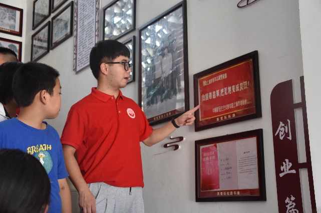 为引导留守儿童铭记红色历史、追寻红色足迹、传承红色基因、弘扬共青精神,实践队队员廖云飞依托童心港湾红色文化长廊开展共青精神宣讲,讲述了98名上海市青年志愿垦荒队队员扛着“向困难进军,把荒地变成良田”的旗帜来到江西德安县米粮铺拖沟岭这片为之奋斗的土地上的奋斗历史。小同学们深受触动,表示要向垦荒队员们看齐并学习,不断传承发扬青年志愿者的垦荒精神,在先辈的奋斗征程中坚定信仰,筑牢担当。