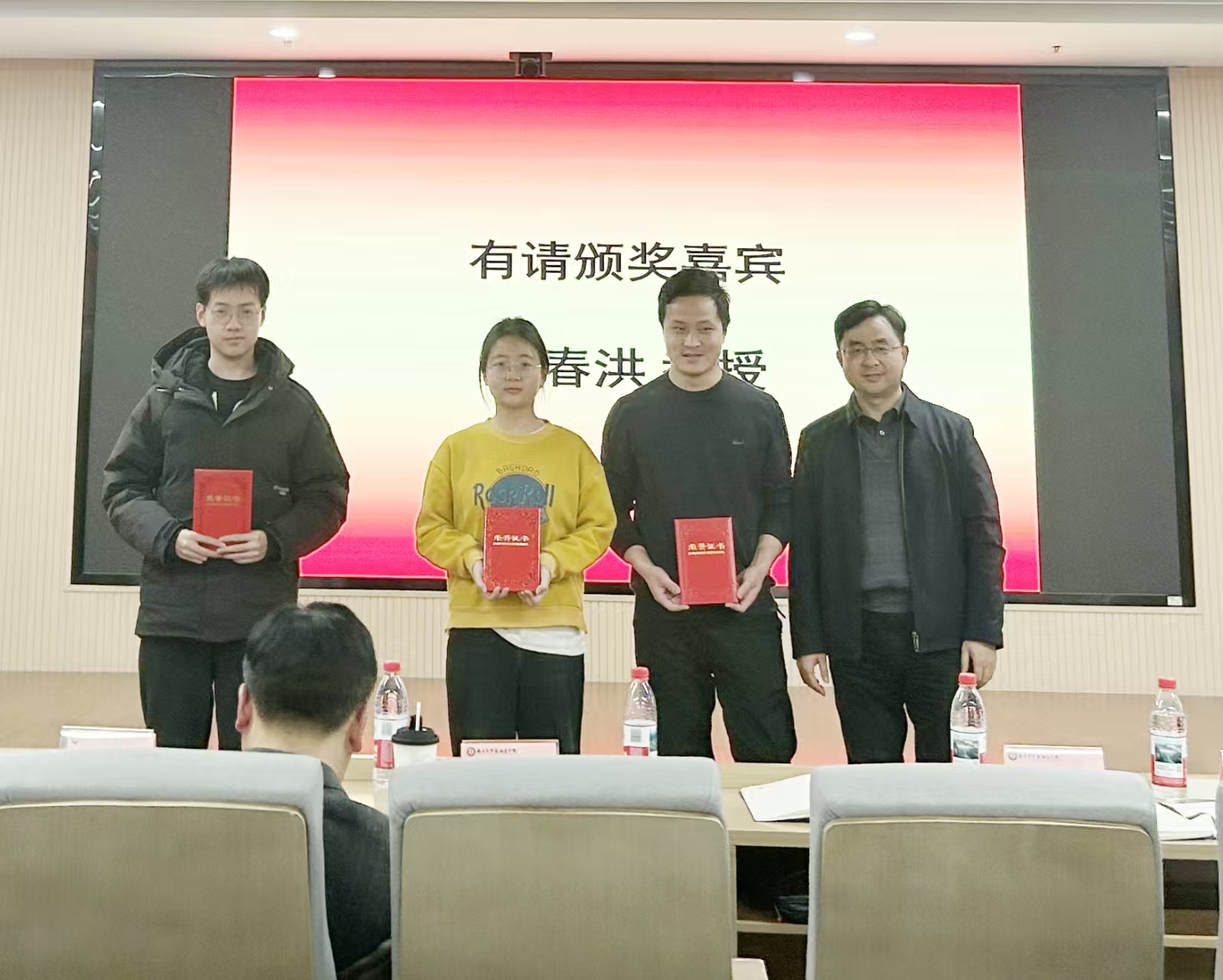 报告结束后,南昌大学江西医学院科研与研究生办公室陈庚发主任致辞,陈主任从医学分子生物学课程对研究生培养的重要性出发,对历届学术交流会的举办给予了肯定。同时,也就江西医学院目前的研究生培养工作和对学生们的未来发展提出了希冀,勉励同学们勇攀学术高峰,为学校增光添彩。江西省生物化学与分子生物学会理事长严晓华教授代表学会及生化教研室做总结发言,肯定了研究生同学在本次学术活动中的优异表现,介绍了学会及生化教研室在本科生/研究生培养中合作开展的多项活动,鼓励参会研究生同学热爱科学,勇于探索。此外,南昌大学创新创业学院院长兼教务处副处长黄春洪教授、南昌大学玛丽女王学院副院长胡晓鹃教授等领导亦出席了本次会议并与嘉宾一起为获奖同学颁发了证书,鼓励他们在今后的科研工作中再接再厉。