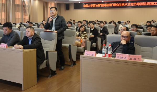 在学术报告前,周策凡教授与学院青年教师及研究生围绕职业发展规划、研究生初期学术生涯规划及具体科研问题开展座谈交流,周教授不仅介绍了科研团队及平台建设的很多宝贵经验,还和在座研究生同学分享了自己科研道路的曲折故事,激励同学们不畏困难,勇于打拼,积极探索科研高峰,并解答了学生们科研学习中的很多困惑,为研究生成长成才提供针对性指导。