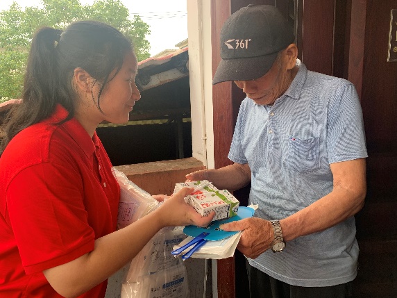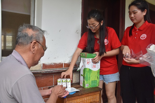 (实践队员们为老人送爱心)