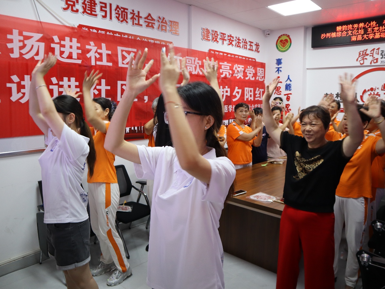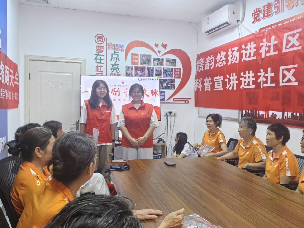 (编辑:张丰泽;摄影:张丰泽)7月4日,南昌大学基础医学院“红色摇篮”实践队和“医心护航”实践队走进赣州市章贡区五龙社区新时代文明实践站,开展了一场别开生面的赣剧文化宣传与互动活动。实践队的同学们通过讲解赣剧艺术、演唱经典红歌、教学手势舞等方式,让赣剧艺术在新时代焕发新活力。