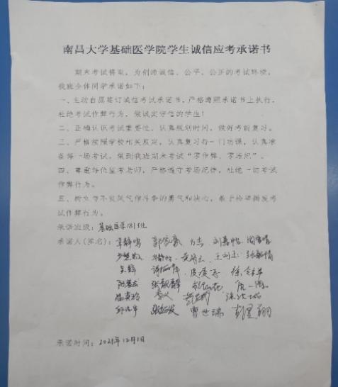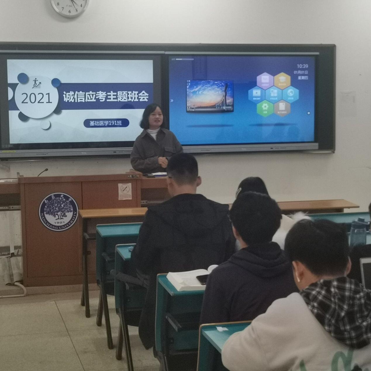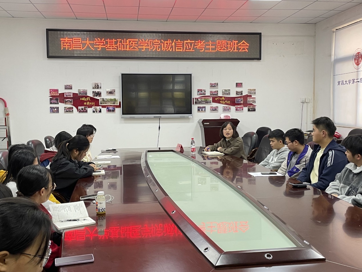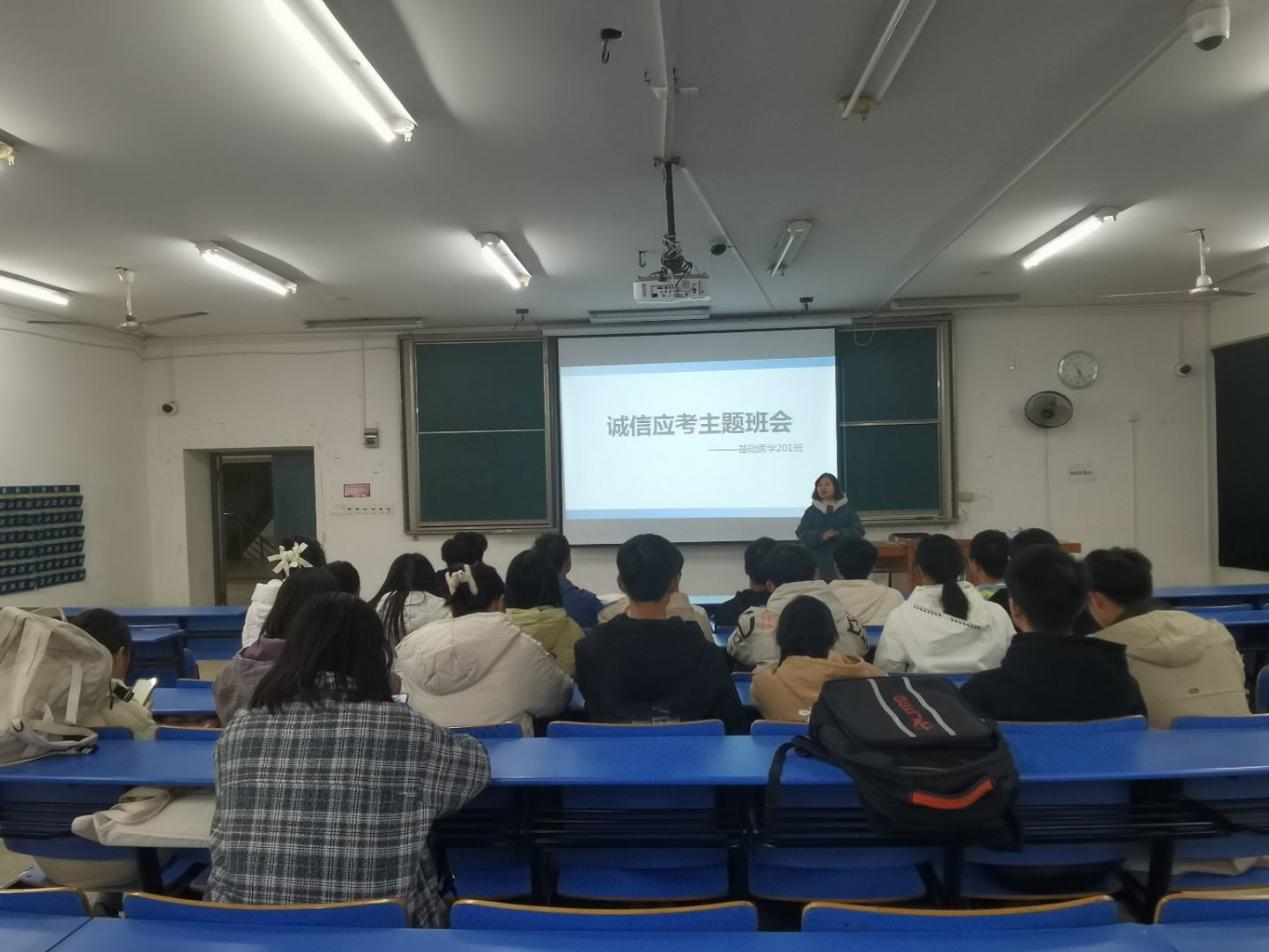 为了让全体学生了解诚信的重要性及其内涵,南昌大学基础医学院各班先后开展诚信应考主题班会,会上各班辅导员向大家发出倡议,倡议大家诚信应考,落实行动。