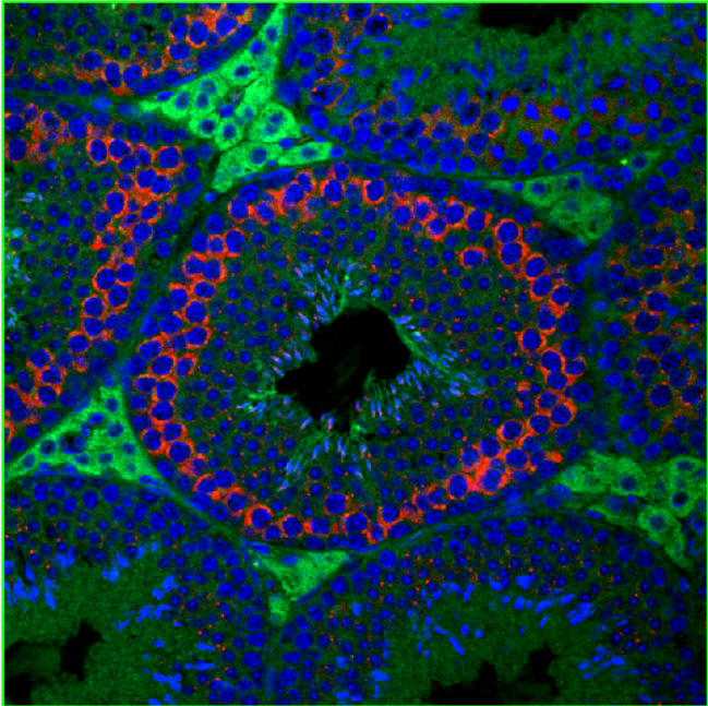 作品描述:本作品描述了纳米级别荧光塑料进入睾丸微结构和精细胞的情况。它犹如生命之眼,塑造着青春的灵魂。