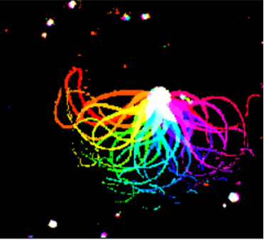 作品描述:彩色的线条描述了一个受精前的获能精子的超激活运动,唯有最健康、最具活力的精子才有与卵子结合的机会,这或许诠释了生命起源的活力。