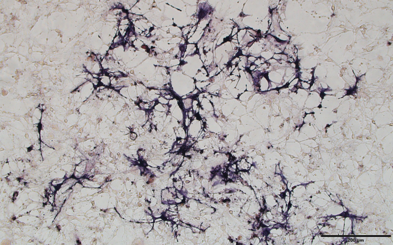 作品描述:碱性磷酸酶(ALP)是骨形成所必需的酶,我们在实验过程中发现,ALP染色后犹如中国传统水墨画的意蕴。