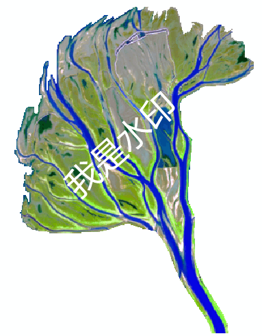 作品描述:从影像上可以看到一条有着众多支流的河道,众多的各级支流如同分叉的树枝一般,主河道如同树干,支流周围的洲滩和植被则如同树上茂盛的叶子,形象逼真,不得不感叹大自然的鬼斧神工!