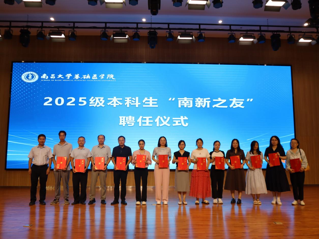 2025年,学院遴选21位政治素质好、育人情怀深、奉献精神强、沟通水平高的教职员工,与本科新生寝室建立“一对一”联系,主动对接新生成长发展需求,及时解决思想、学习、生活、发展等实际问题,共同帮助新生开好头、起好步。会上,公布了2025级新生“南新之友”的聘任名单,潘秉兴院长为“南新之友”代表颁发聘书。