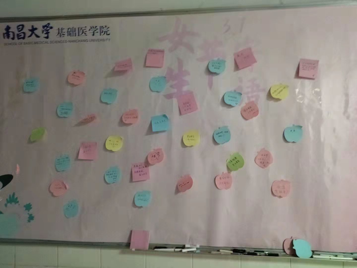 活动当天我院也在学院黑板上进行女生节寄语书写,同学们纷纷写下对于女生的祝福与希翼。黑板上的每一张贴纸都记录了一份祝福、一份温暖与一份情谊!