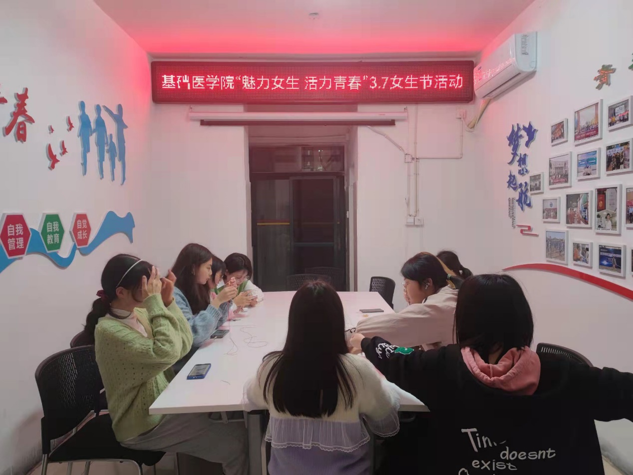 为活跃我院文化氛围,提升我院学生的综合素质,引导广大女生更多关注自身的道德修养、文化内涵,心理健康,从容自信等综合素质的提高,帮助女生正确看待审视自己和提高自己。我院于3月7日19:30在前湖南院4栋学生公寓134131举办了以“魅力女生,活力青春”为主题的女生节活动,活动内容分别为手链DIY和展板留言部分