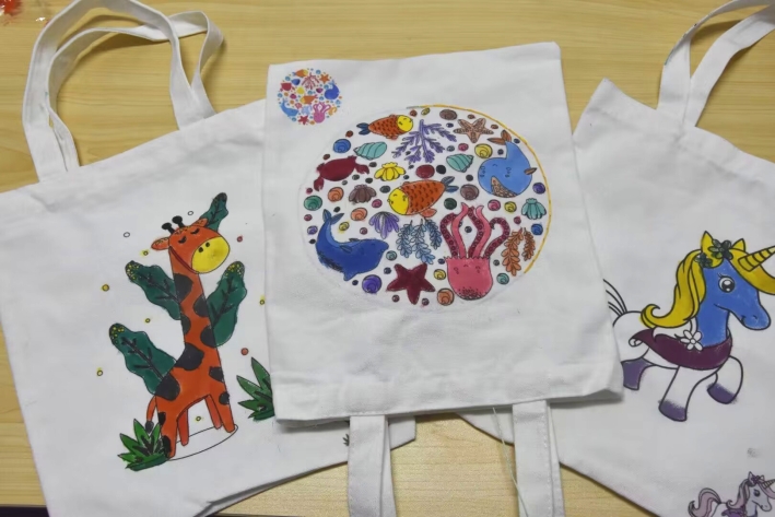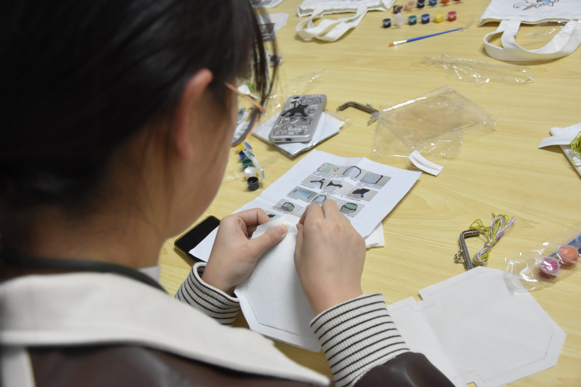 本次活动邀请女同学参加diy帆布包,每人一份diy材料,画出自己喜欢的帆布包。大家使用分配到的颜料,在帆布包上精心绘制自己喜爱的图案,每个人的图案都代表了自己的爱好或是对未来的美好祝愿。在本次帆布包diy活动中,同学们都绘制出了精美的作品。每一幅画都凝聚着同学们的汗水,承载着同学们对生活的热爱。