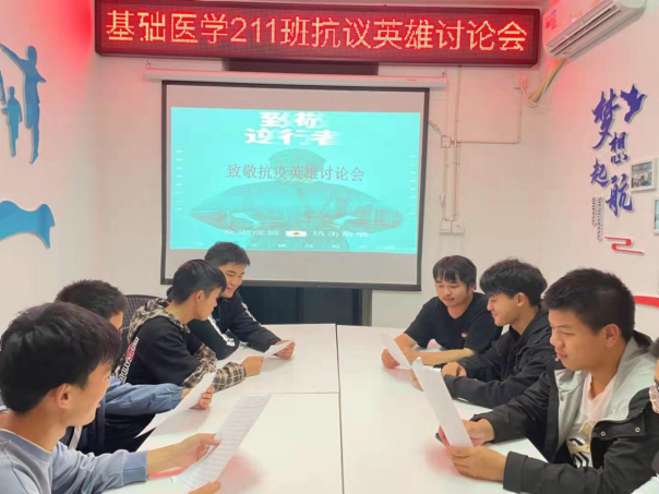 基础医学211班团支部创新“请党放心,强国有我”特别主题团日活动形式,通过开展致敬抗英雄讨论会,撰写心得体会;开展“青春建功十四五”青年座谈会,创作“祖国,我想对你说”微视频;观看爱国相关电影;开展爱国主题演讲比赛等系列活动,引导团员青年自觉将个人梦想与实现中华民族伟大复兴的中国梦紧密结合,奋进“十四五”的昂扬旋律。