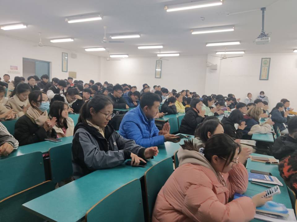 我院辅导员王葳老师在会上发言,嘱咐同学们要诚信贷款,并努力学习,以求未来成为栋梁之材,回报社会。