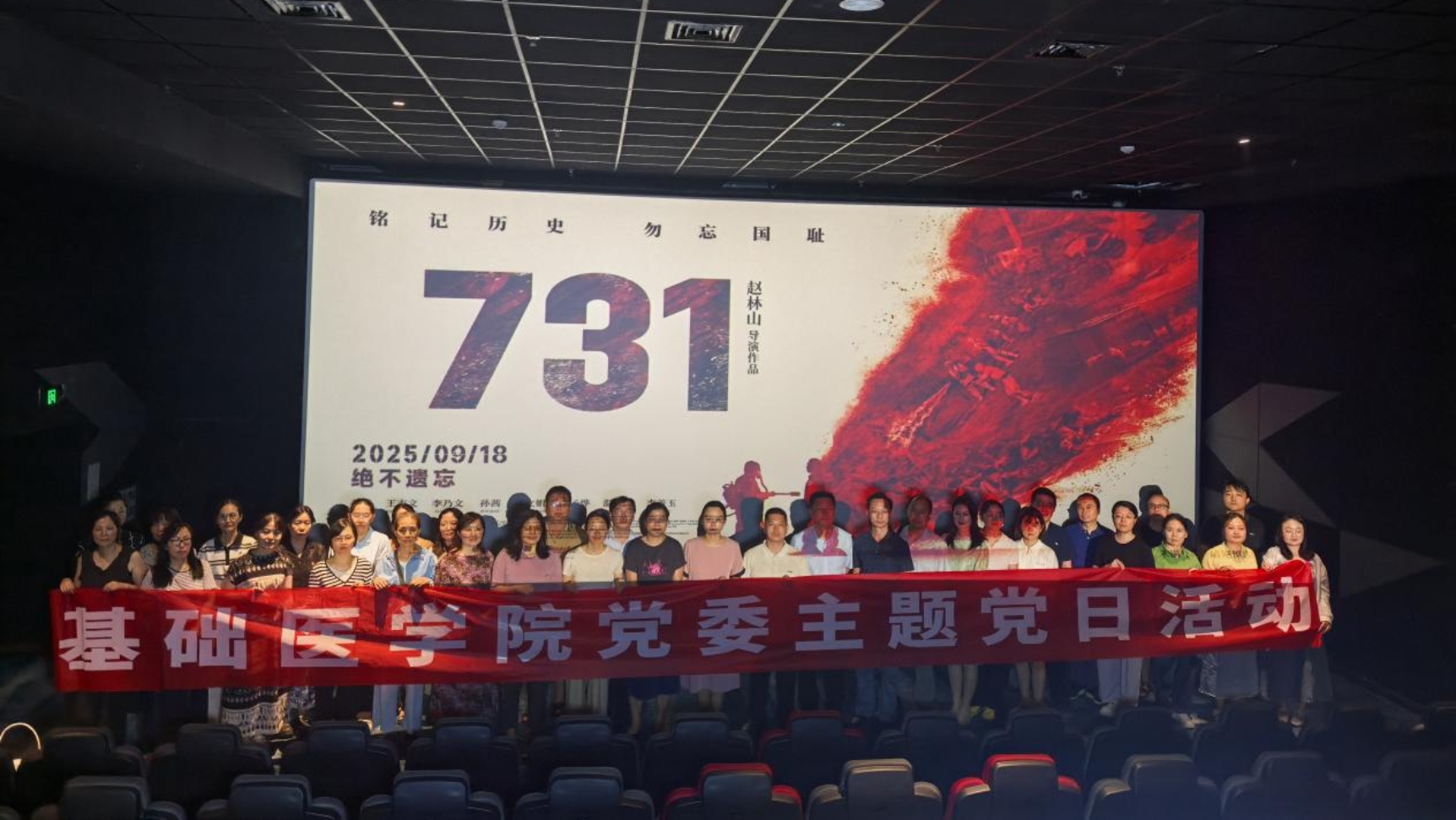 为进一步开展好“师德师风建设月”系列活动,9月18日,在标志中国人民抗日战争起点的九一八事变爆发94周年之际,基础医学院各支部联合开展“铭记历史·践守初心”主题党日活动,组织党员观看重大历史题材影片《731》,在光影中回溯民族苦难,在铭记中锤炼党性担当,在回望历史中筑牢医者初心。