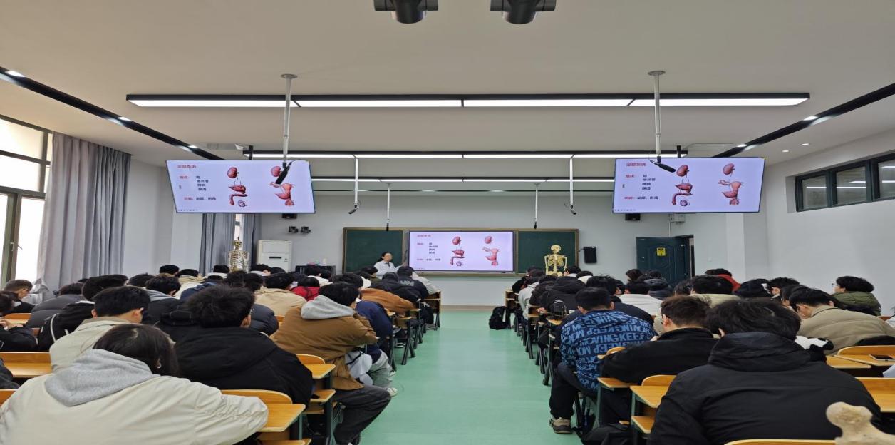活动在学院实验教学中心拉开帷幕,先进完备的教学设备和整洁优良的实验环境,迅速激发了同学们的探索热情。聂菁、杨宝林、李耀斌三位教师以通俗易懂的语言,系统介绍了人体九大系统的构成与功能,将抽象的人体结构知识转化为生动有趣的科普内容。通过设置趣味问答、开展互动交流,引导同学们主动思考,夯实对人体结构的基础认知。