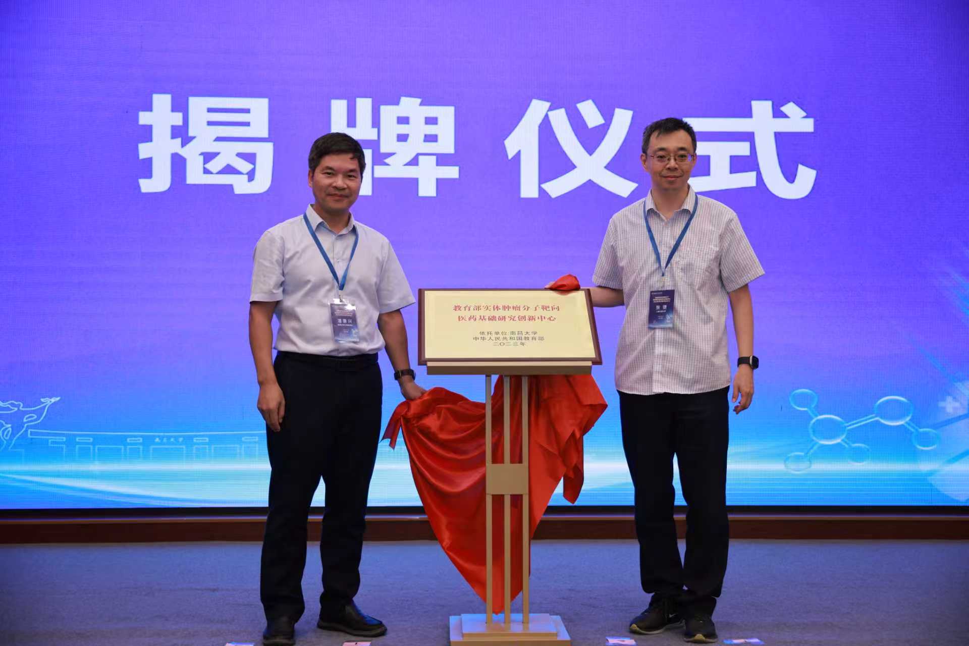 南昌大学江西医学院党委副书记、主持工作副院长潘秉兴教授与上海交通大学张健教授共同为肿瘤中心揭牌,标志着中心建设进入新阶段。