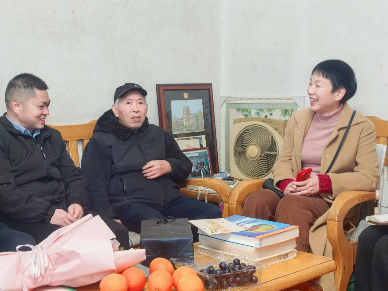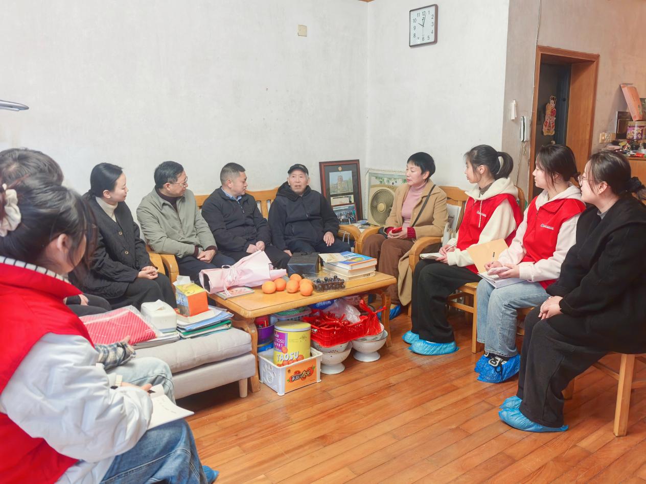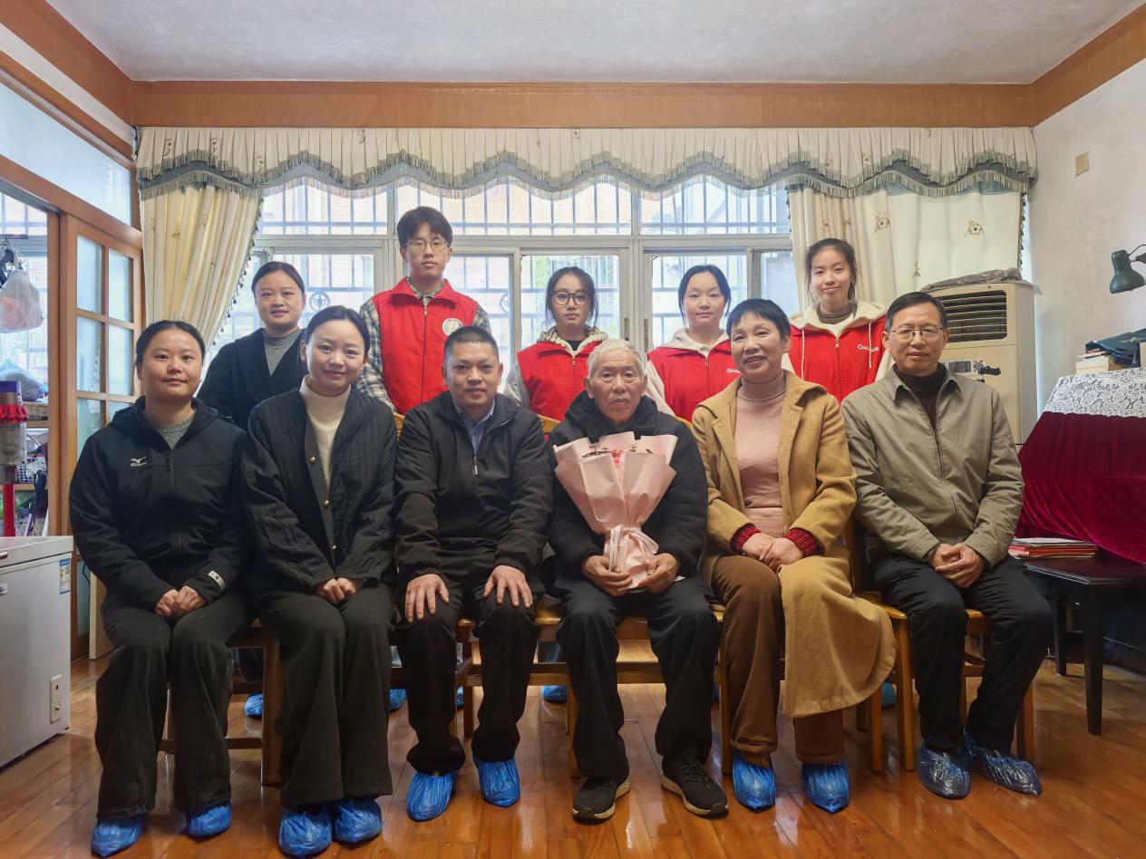 为弘扬教育家精神,传承教育薪火,厚植育人情怀,2025年12月19日,基础医学院开展“医路朝夕”寻访老教师活动。在学院离退休党支部书记李刚老师的带领下,学院教师代表及学生萤火志愿者协会共计十余人一同走进退休教师、老党员刘龙平教授家中,一起聆听一位扎根讲台、为教育奉献一生的育人故事,并衷心向刘龙平教授致以诚挚的问候。