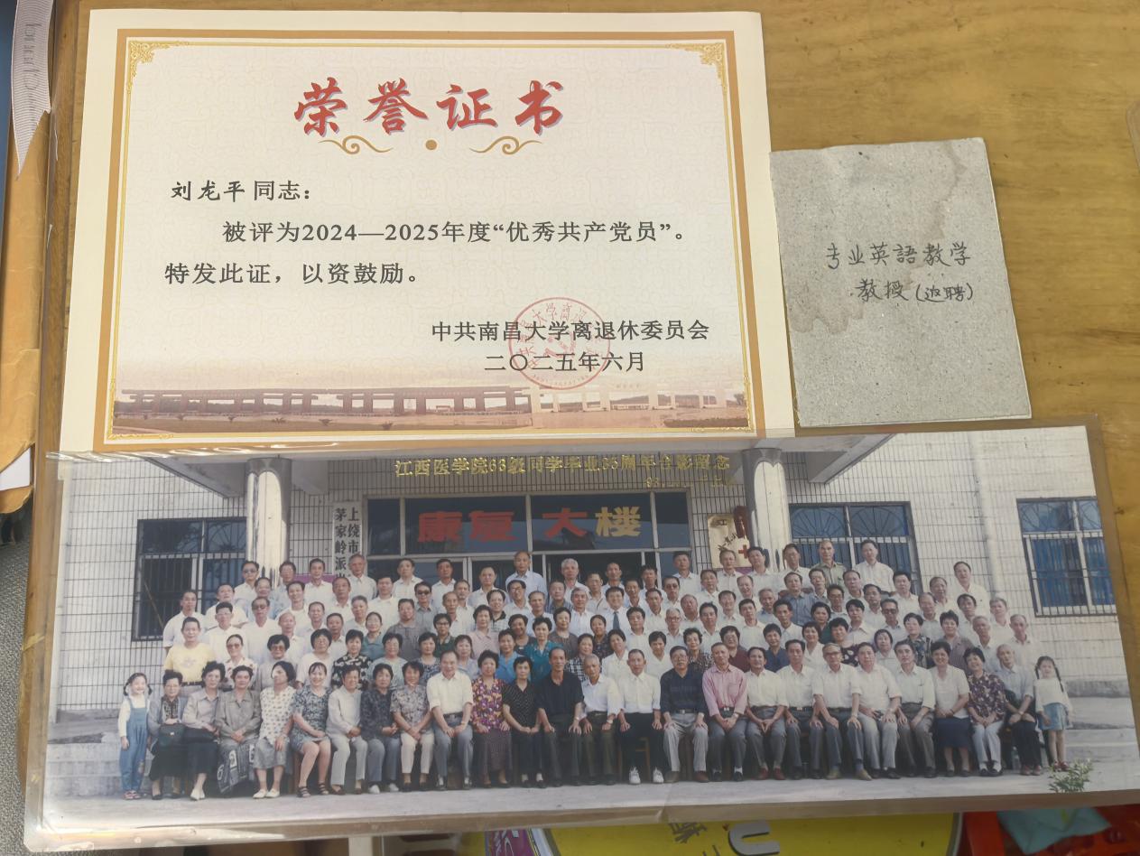更令人感动的是,刘龙平教授多年来始终默默支持学校、学院和教研室的发展,多次捐资捐物,助力医学教育。他曾于2008年向学校捐赠珍贵外文医学书籍22册,价值1252美元;在日常生活中亦持续通过各类途径回馈学校,体现了一名老教师、老党员无私奉献、薪火相传的崇高情怀。