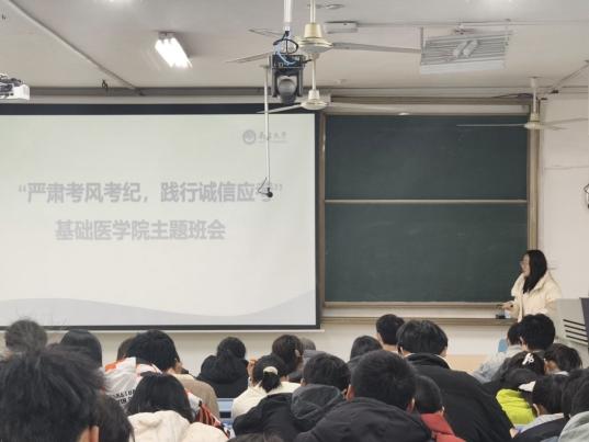 前期,我院通过“诚信应考”主题班会向学生传达“认真备考、诚信应考”考试要求,倡导全体同学以端正的态度对待考试,以真实的学识完成答卷,共同守护严谨求实的优良学风。
