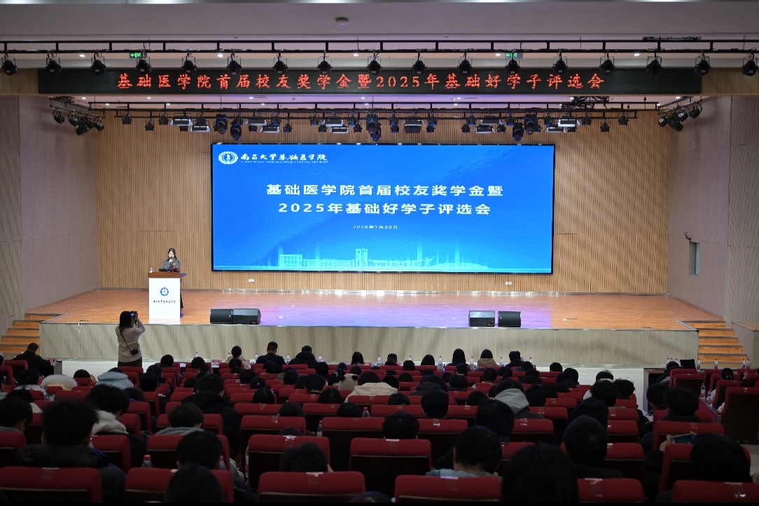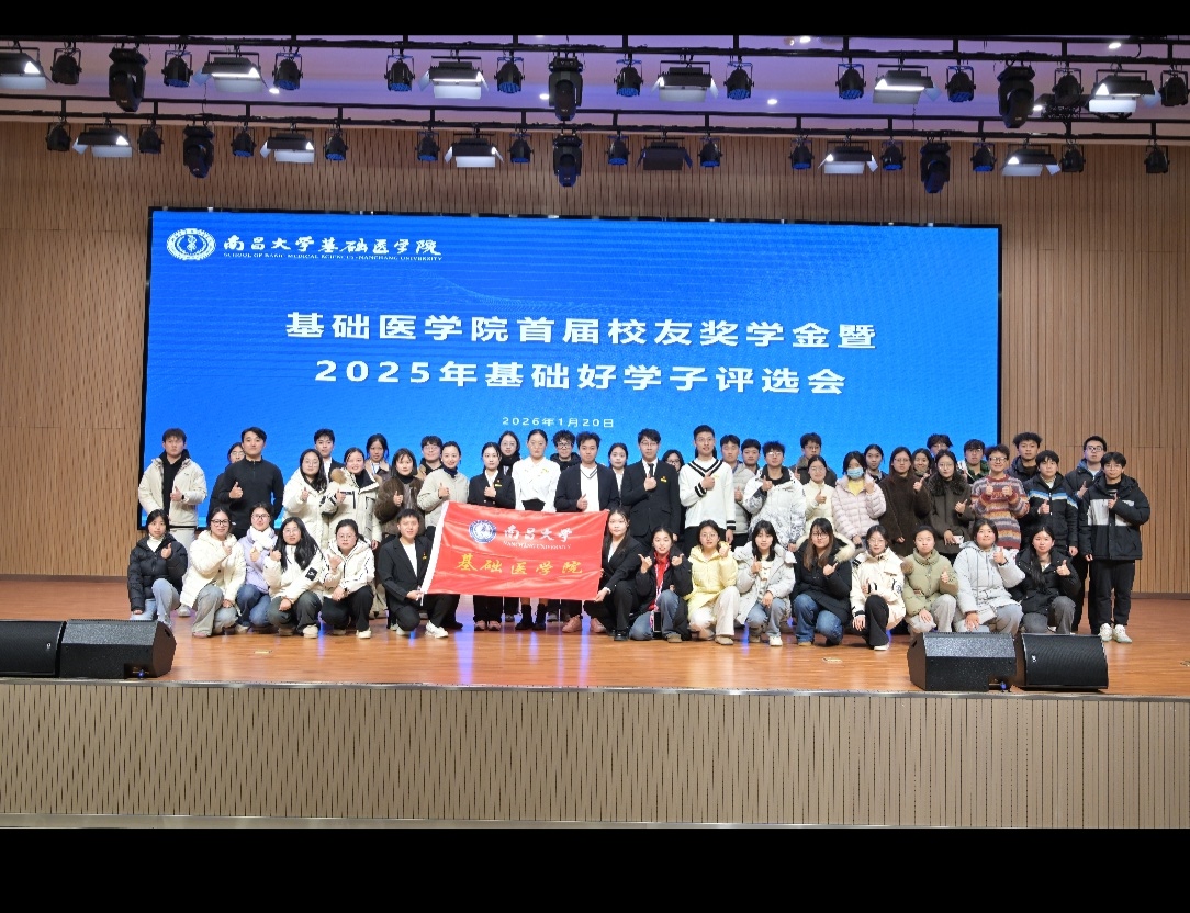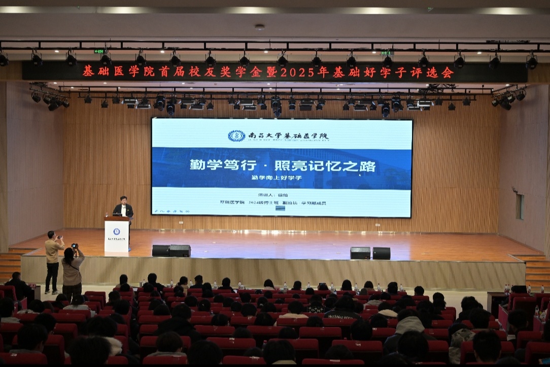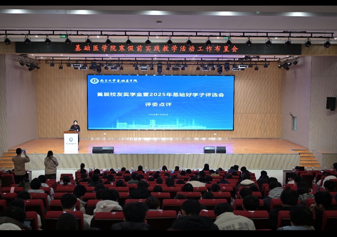 1月20日下午,我院在前湖南院医学创新中心一楼报告厅举行首届校友奖学金暨2025年“基础好学子”评选会。本次活动旨在深入学习贯彻习近平总书记关于青年工作的重要思想,培育新时代大学生先进榜样,进一步发挥校友作用,凝聚校友力量,传承校友情谊。经前期本人申报、材料审核、学院初赛等环节,共有15名优秀学子脱颖而出,进入本次决赛环节。学校、医学院相关部门领导老师组成评委团,对候选人综合表现进行打分。学院领导、师生代表近四百人齐聚一堂,共同见证这场青春风采的盛会。